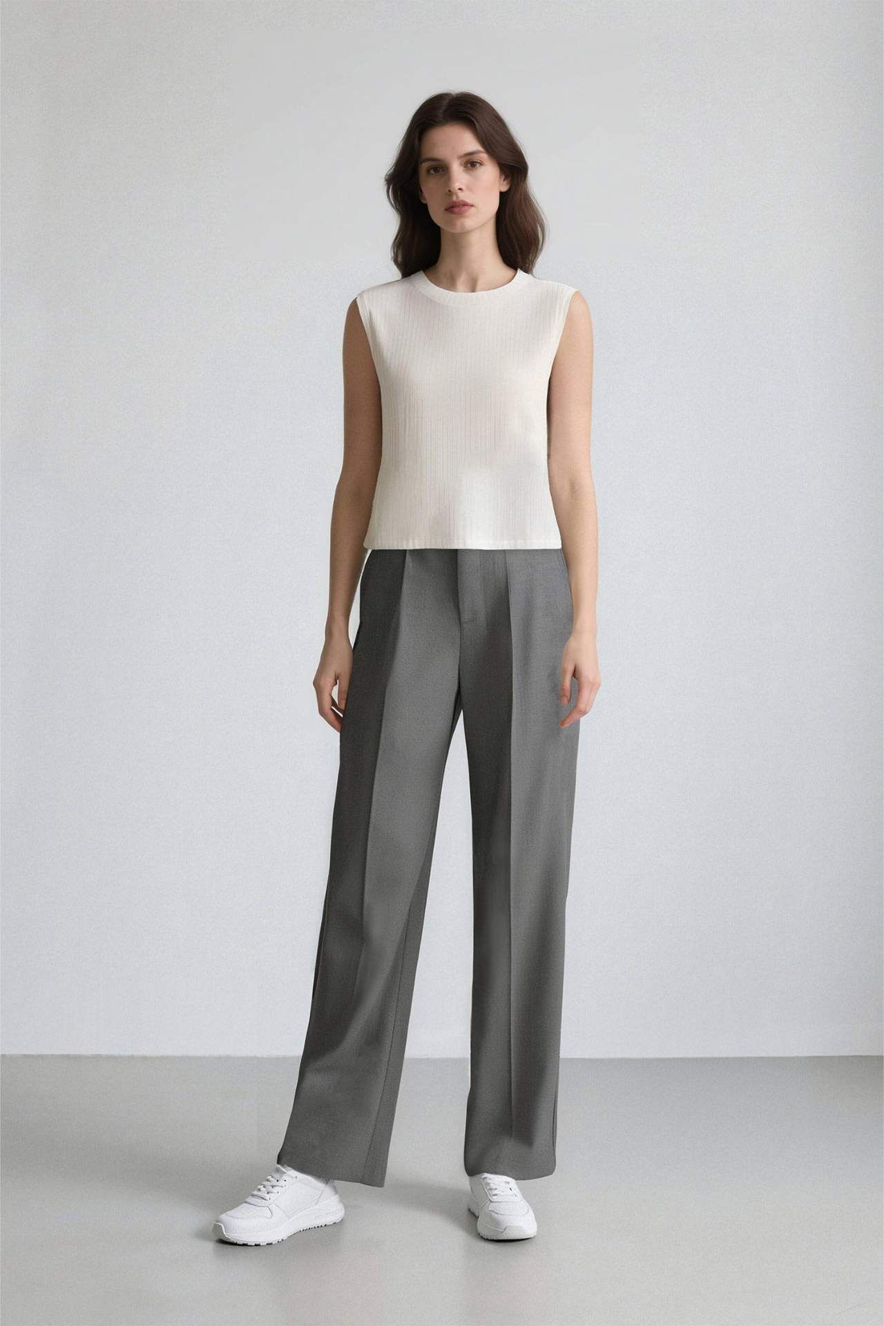 DeFacto Wide Leg Gri Kışlık Pantolon Geniş Bol Paça Basic Düz Uzun Boy Yüksek Bel Cepli Pensli
