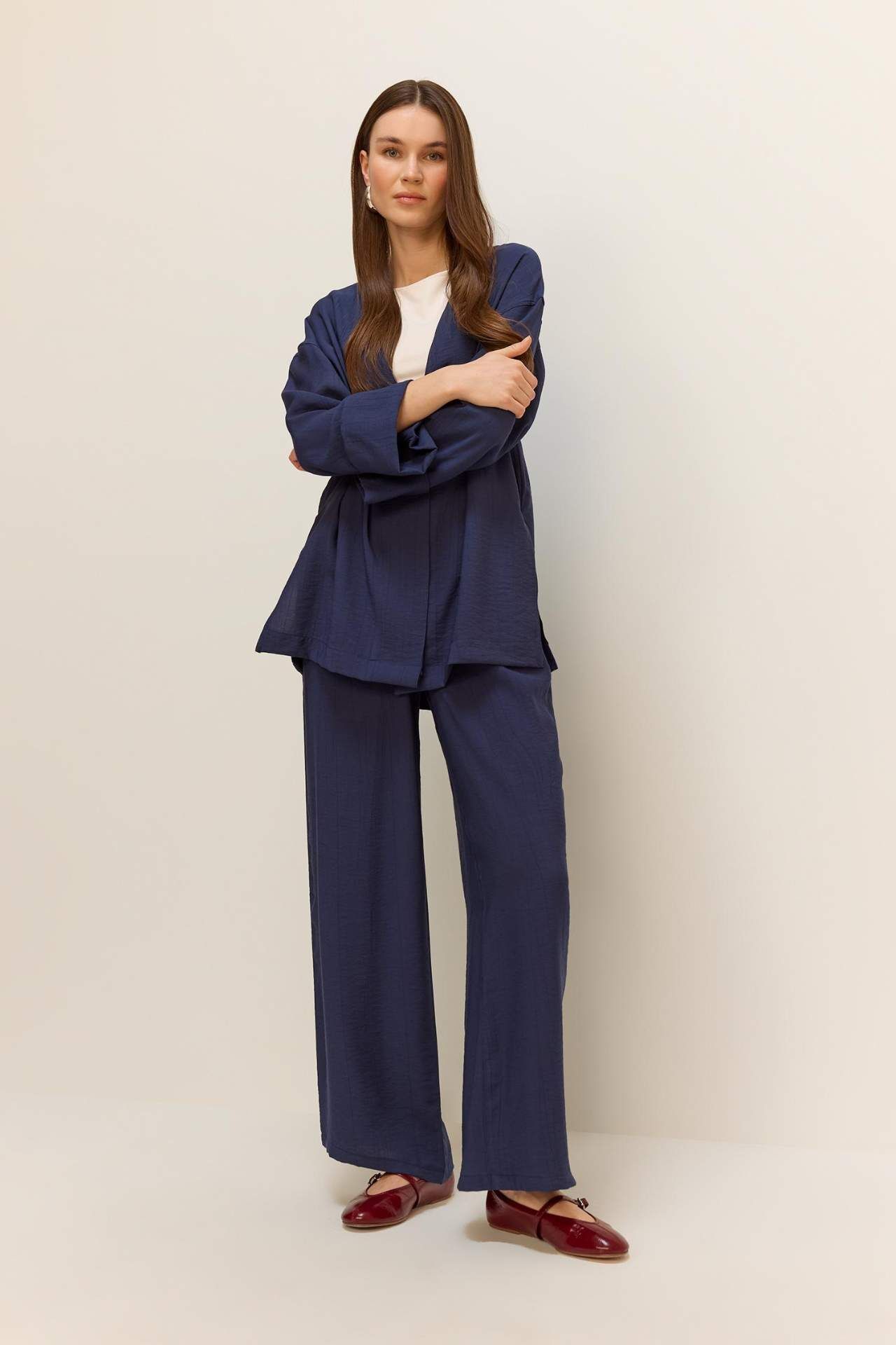 DeFacto Wide Leg Krinkıl Kumaş Geniş Paça Pantolon