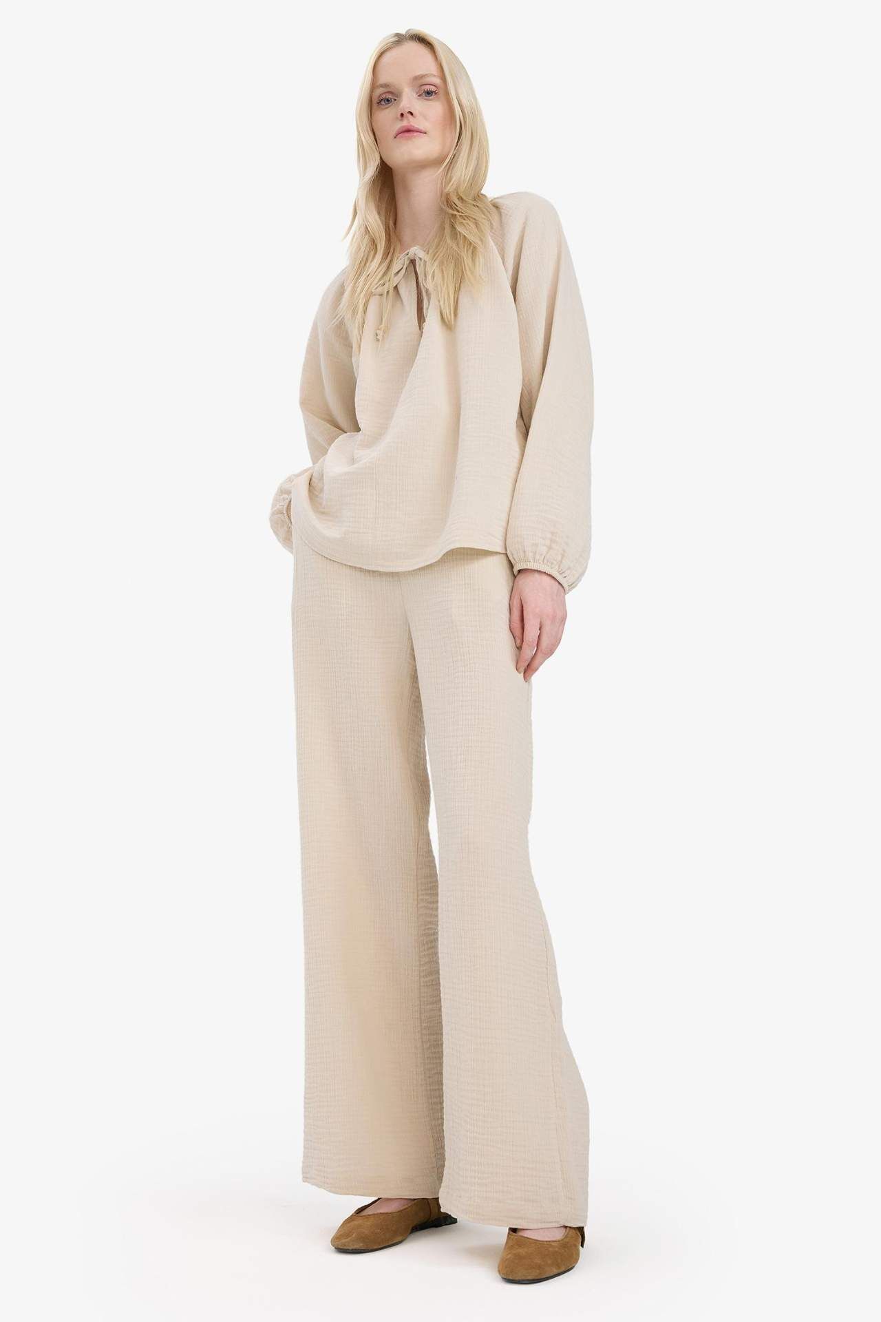 DeFacto Wide Leg Müslin Kumaş Pantolon Çift Cepli Yüksek Bel Geniş Paça E3934AX25SMBG186