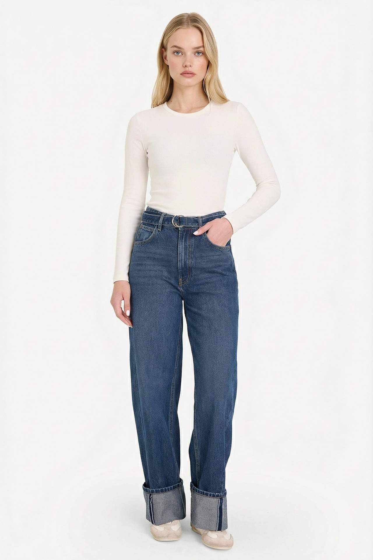 Wide Leg Normal Bel Katlamalı Paça Uzun Jean Pantolon