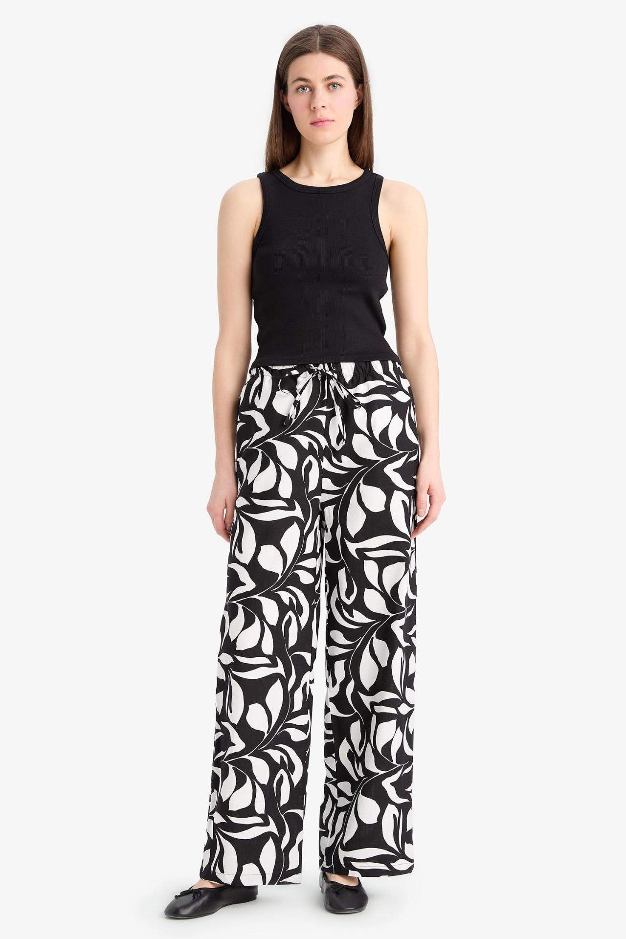 DeFacto Wide Leg Poplin Kumaş Pantolon Yüksek Bel Uzun Boy Geniş Paça