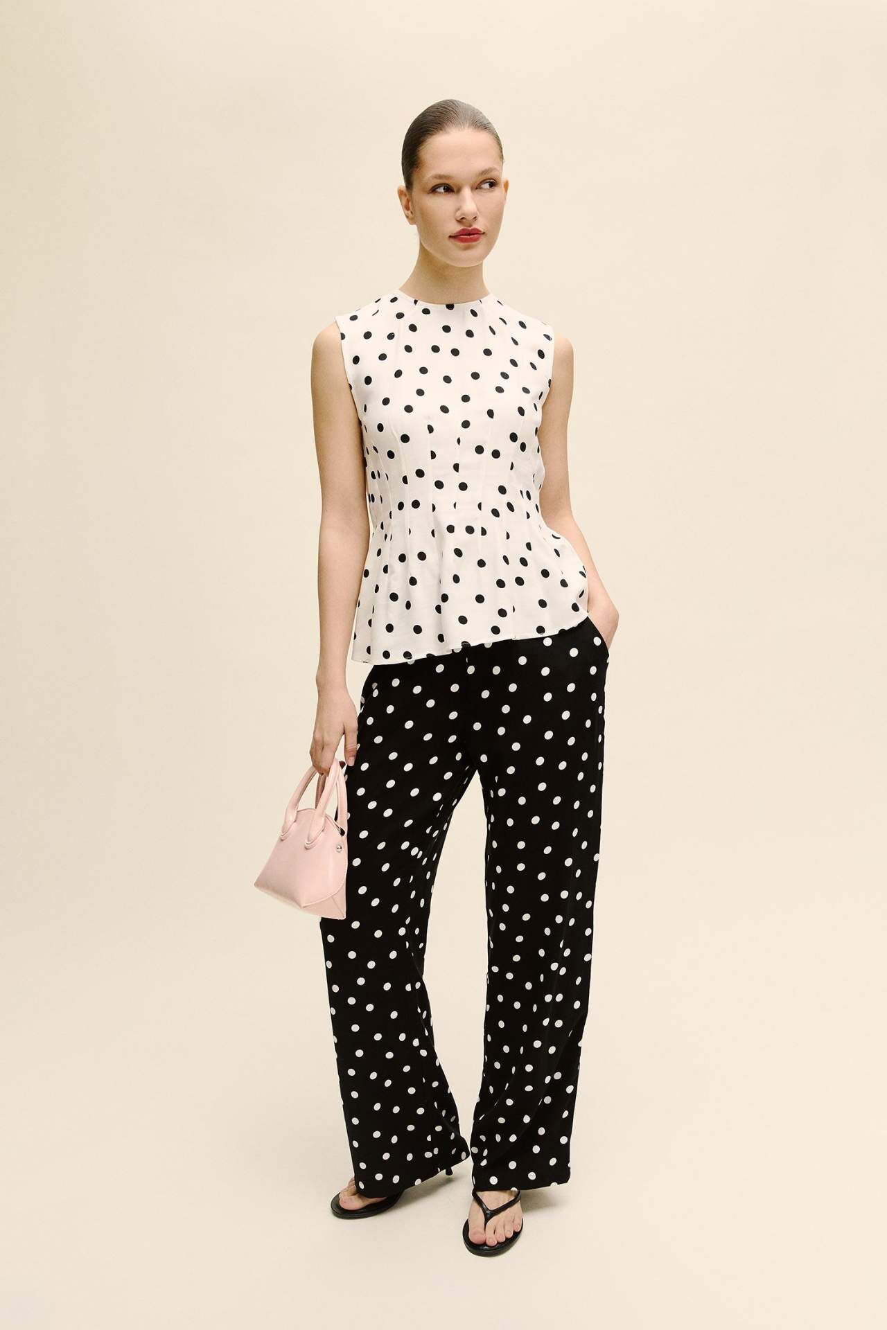 Wide Leg Puantiyeli Yüksek Bel Viskon Pantolon, hafif ve akışkan viskon kumaşıyla gün boyu ferah bir kullanım sunar. Yüksek bel kesimi ve geniş paça formu sayesinde hem zarif hem de modern bir siluet oluşturur. Puantiye deseniyle kombinlerinize enerjik ve şık bir dokunuş katar. Viskoz 100% Manken Bedeni: Göğüs: 82 Boy: 1,76 Basen: 88 Bel: 59