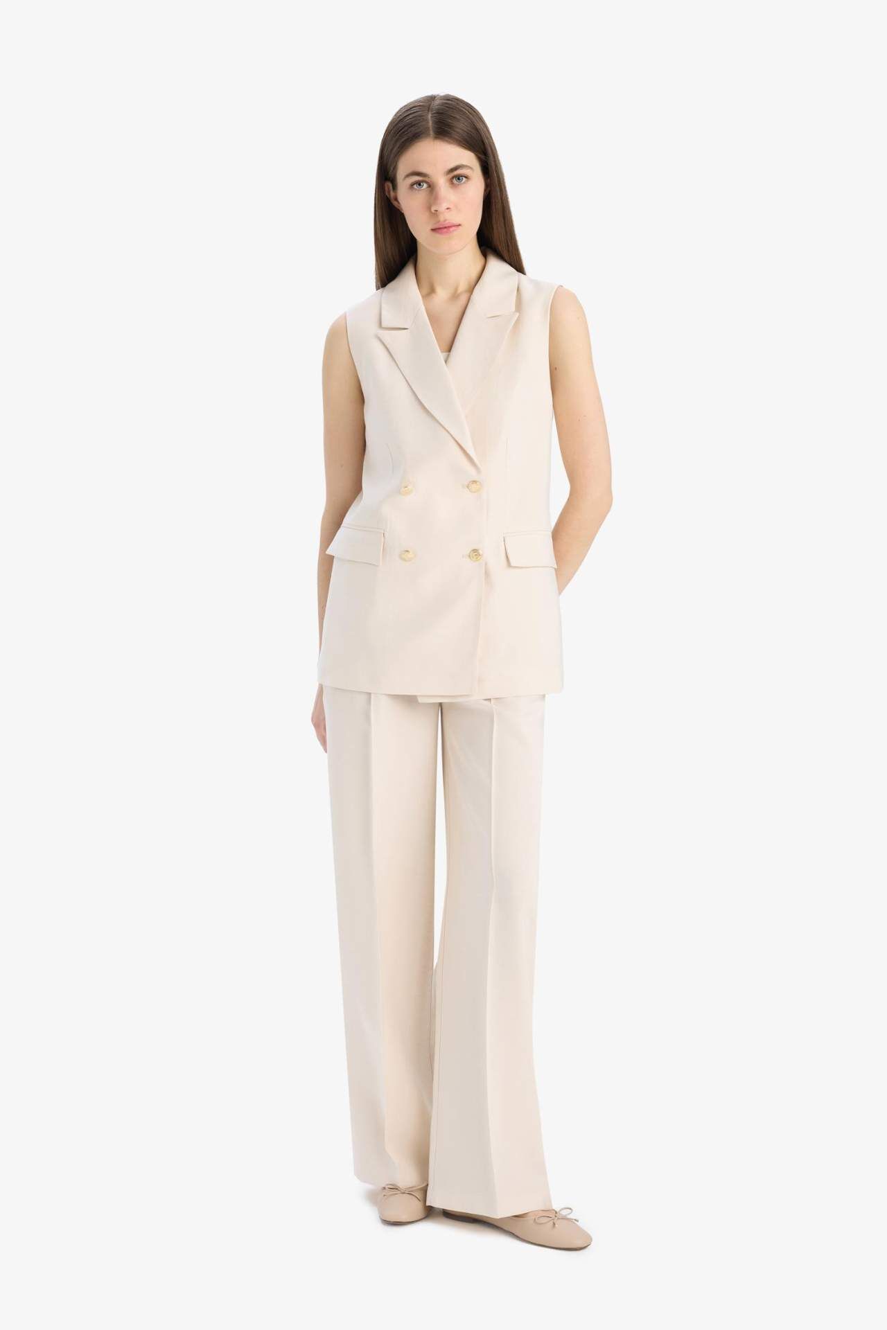 DeFacto Wide Leg Tensel Kumaş Pantolon Cepli Yüksek Bel Uzun Geniş Paça
