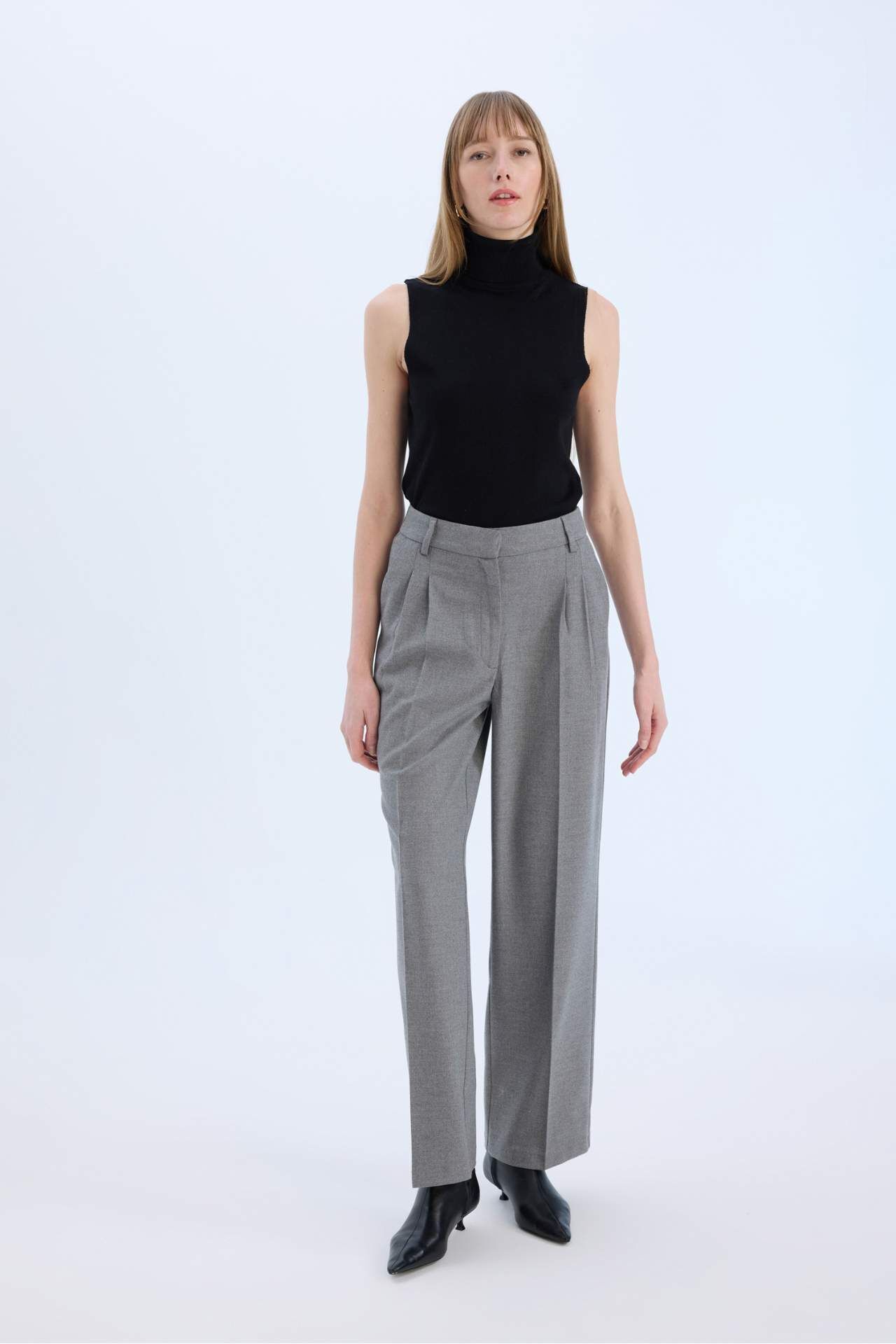 DeFacto Wide Leg Yüksek Bel Düz Paça Flanel Pantolon