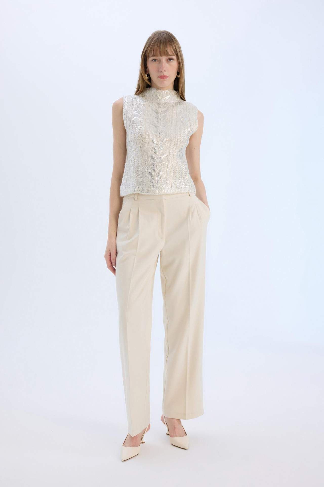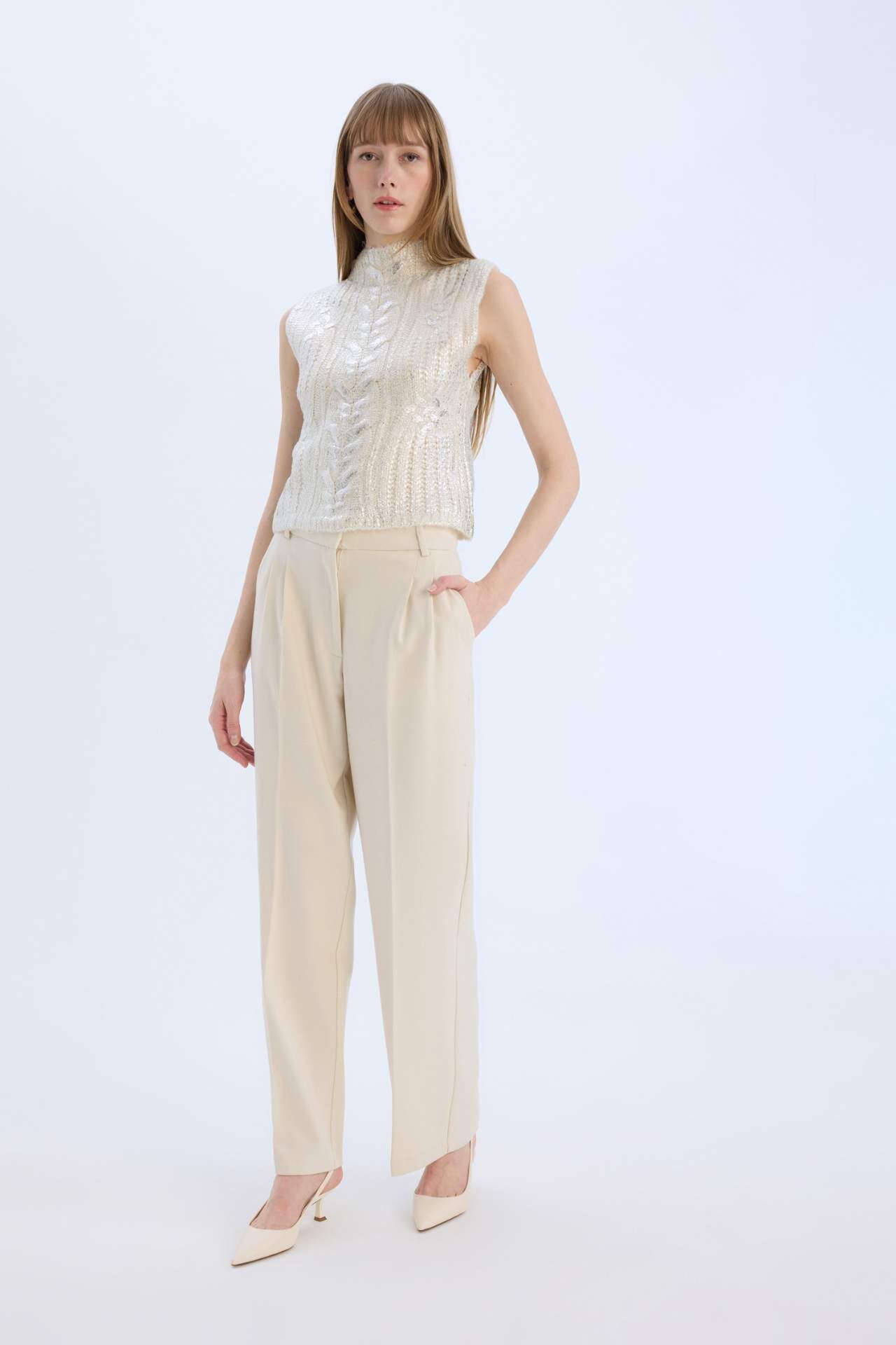 Yetişkin kadınlar için yüksek bel dokuma pantolon. Geniş paça detayı ve kemerli kapama özelliği ile şık ve rahat bir görünüm sunar. Flanel kumaştan üretilmiş, ekru renkteki bu pantolon, sonbahar/kış sezonu için ideal bir tercihtir. Temel çeşit pantolon kategorisinde yer alır. Elastan 2%,Viskoz 34%,Poliester 64%,Elastan 2%,Viskoz 34%,Poliester 64%