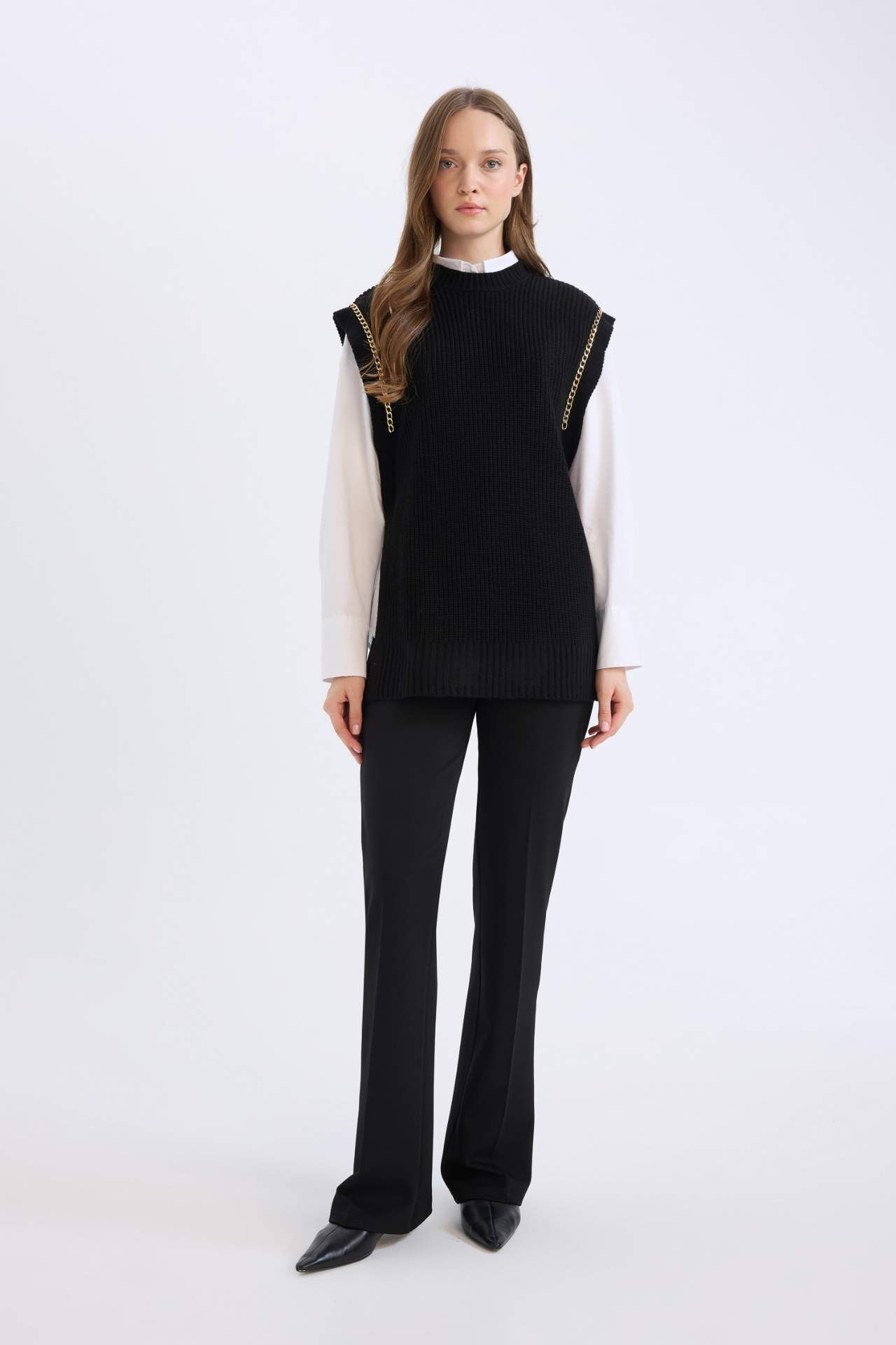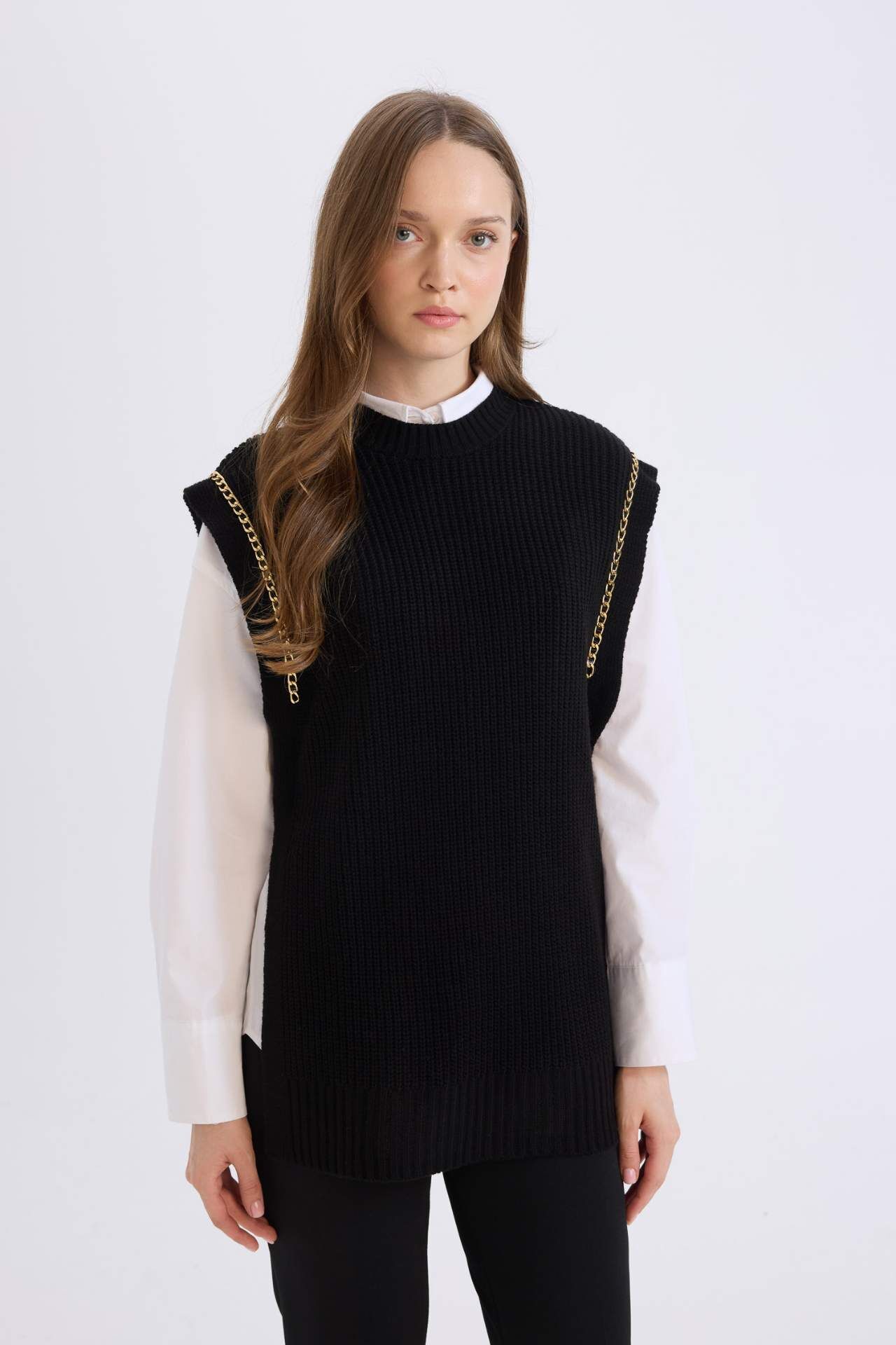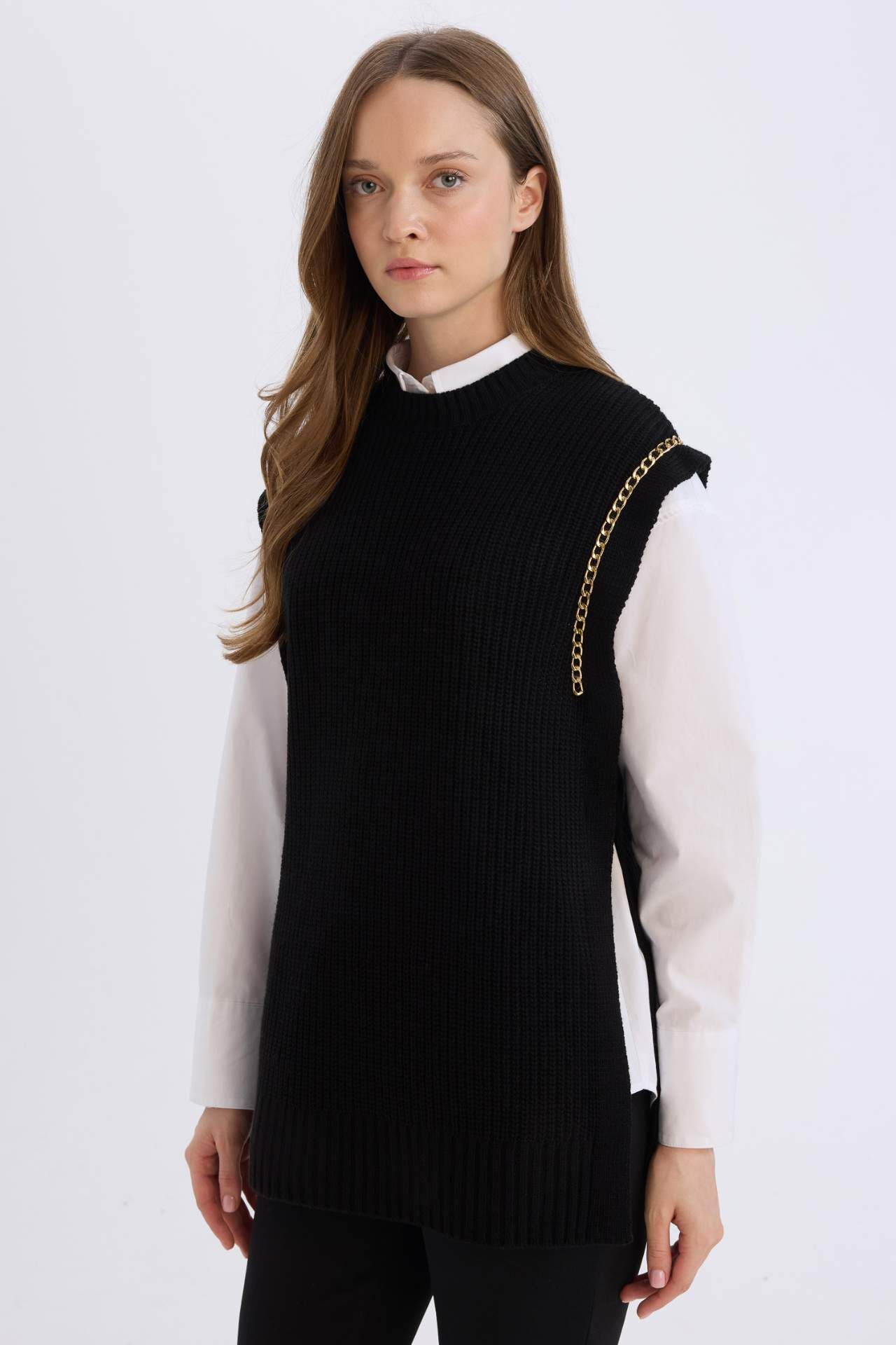 DeFacto Yarım Balıkçı Yaka Basic Düz Yan Yırtmaçlı Süveter