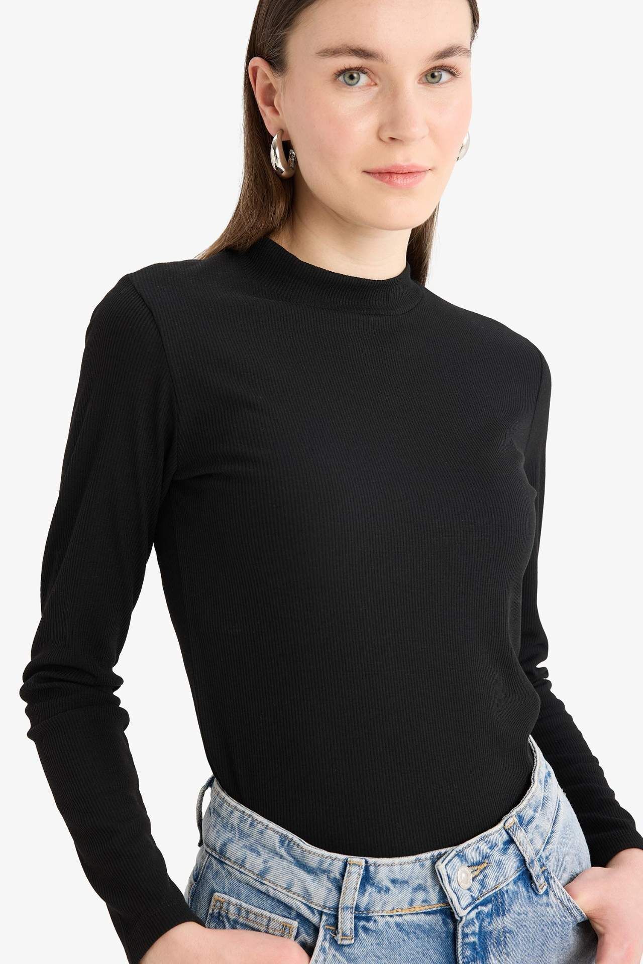 DeFacto Yarım Balıkçı Yaka Fitilli Kaşkorse Uzun Kollu Tunik