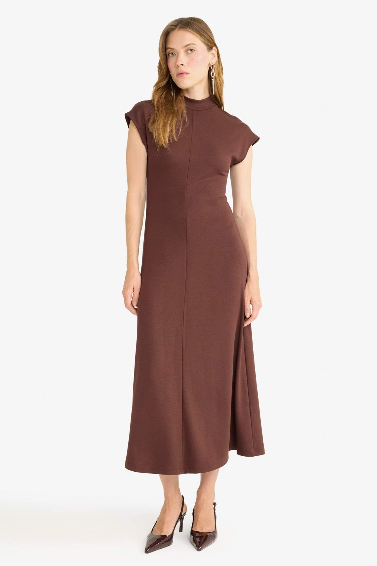 Yarım Balıkçı Yaka Ribana Kısa Kollu Elbise