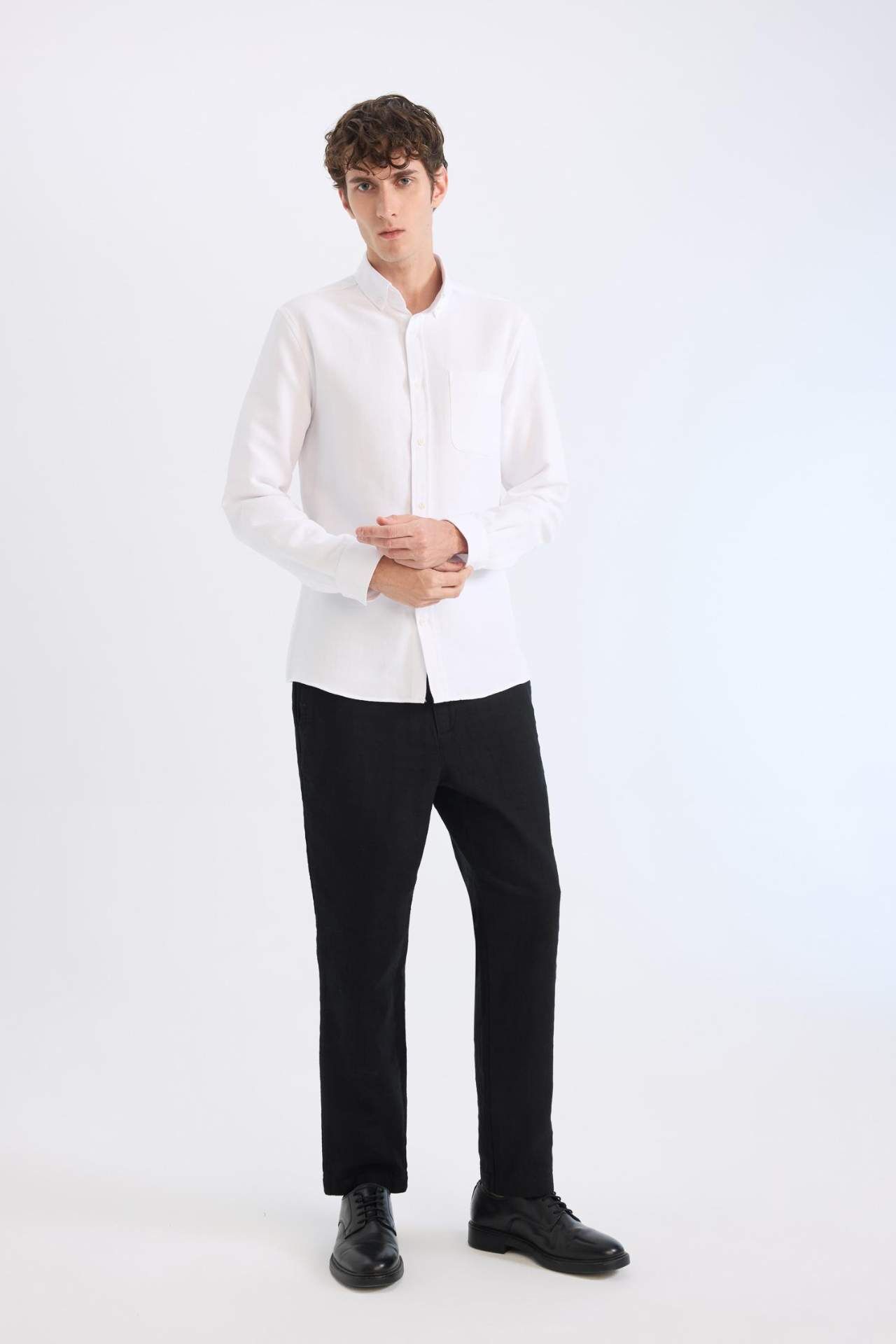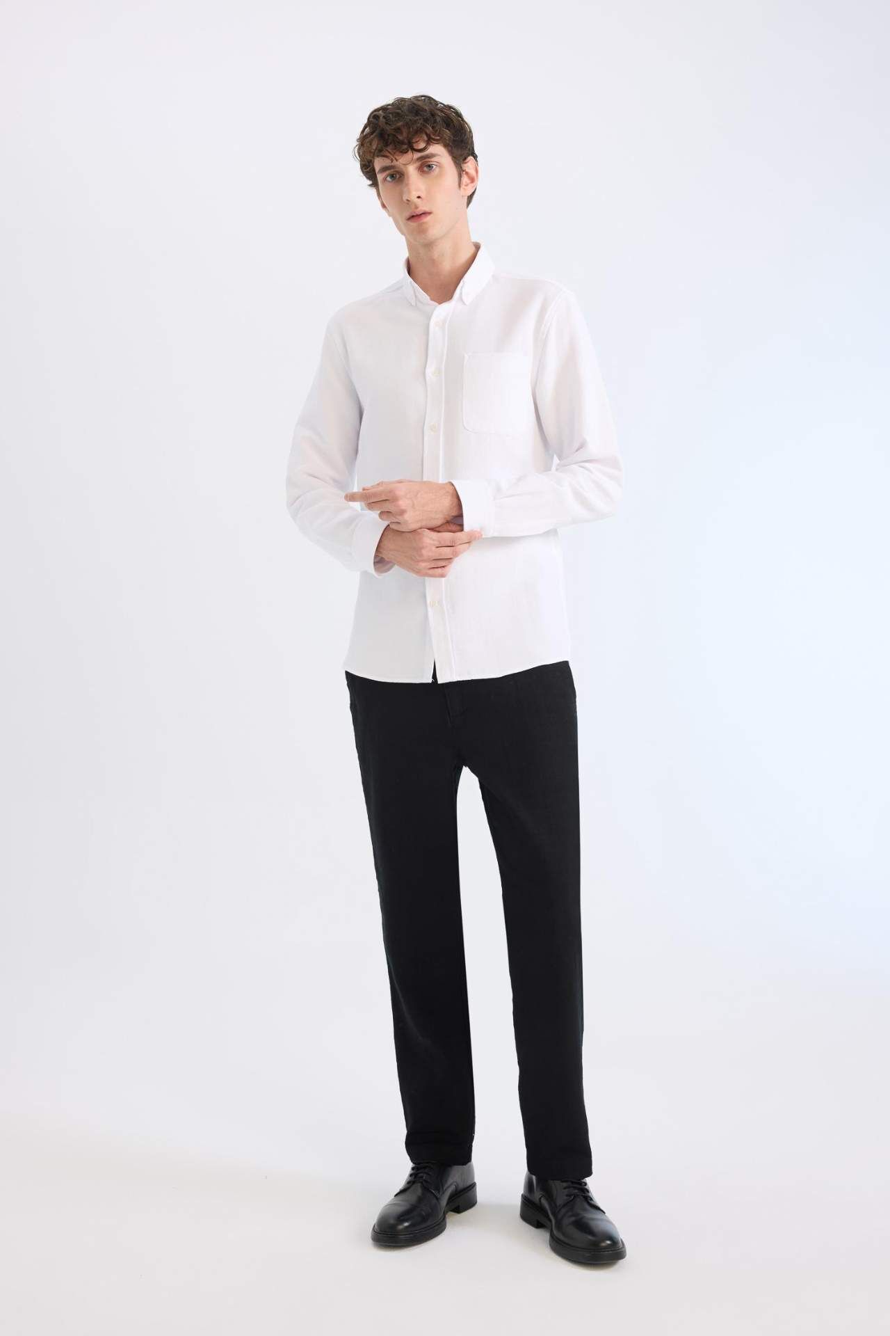 DeFacto Yazlık Jogger Pantolon Regular Fit Normal Kesim Keten Görünümlü Düz Paça Pamuklu Cepli B4138AX25SPBK81