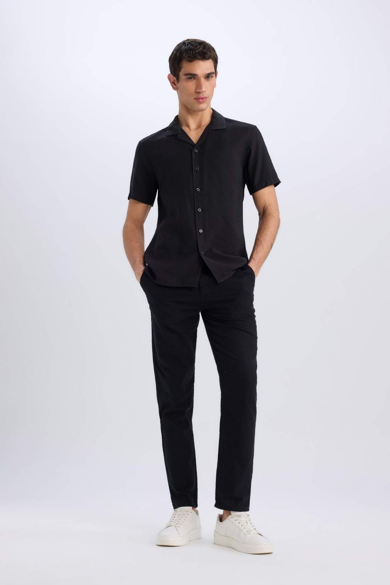 DeFacto Yazlık Jogger Pantolon Slim Fit Dar Kesim Düz Paça Pamuklu Cepli D2671AX25SMBK81