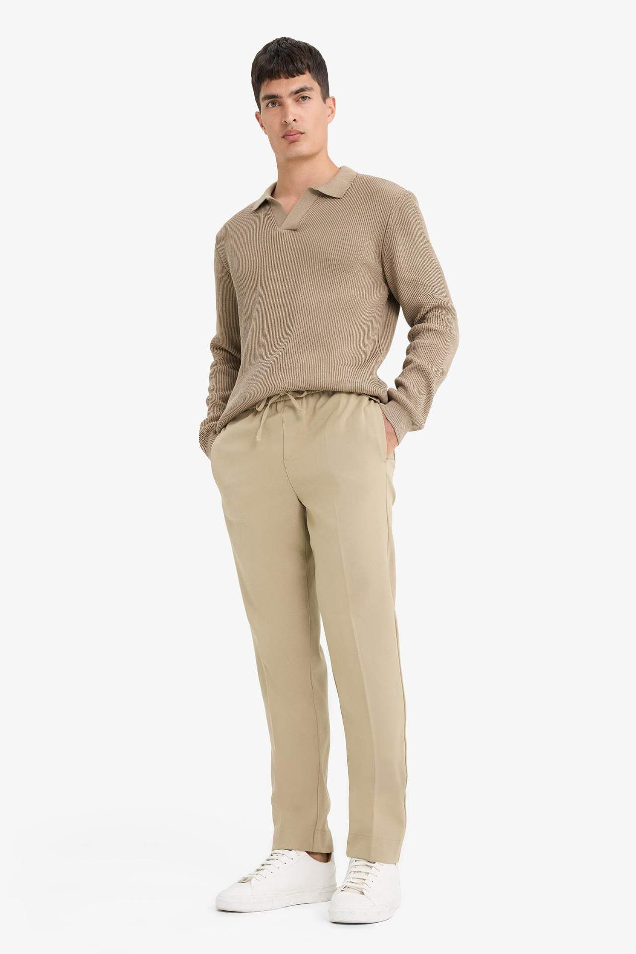 DeFacto Yazlık Kumaş Jogger Pantolon Beli Bağcıklı Lastikli Düz Paça Cepli Her Yöne Esneyen A9943AX25SPBG315