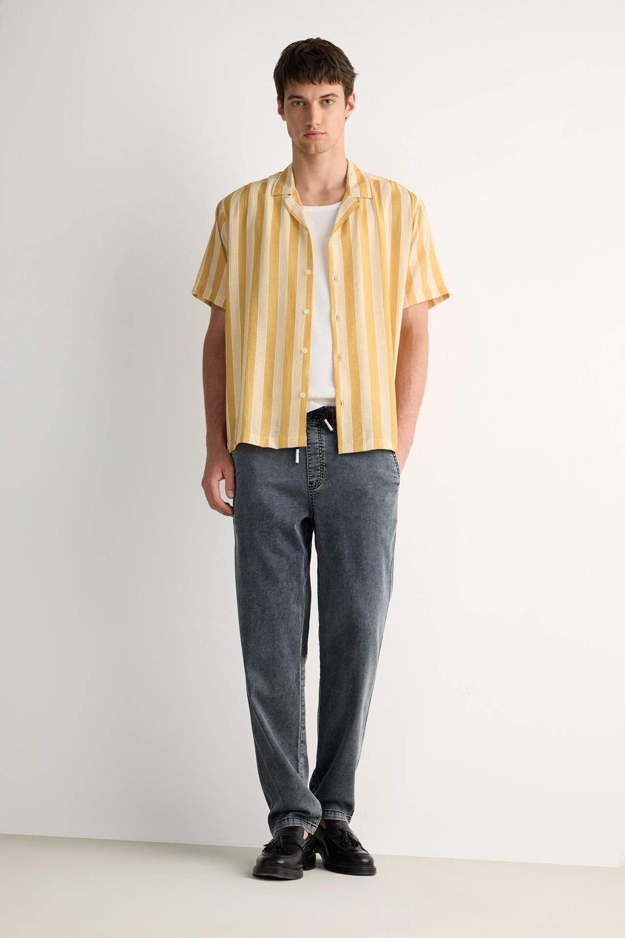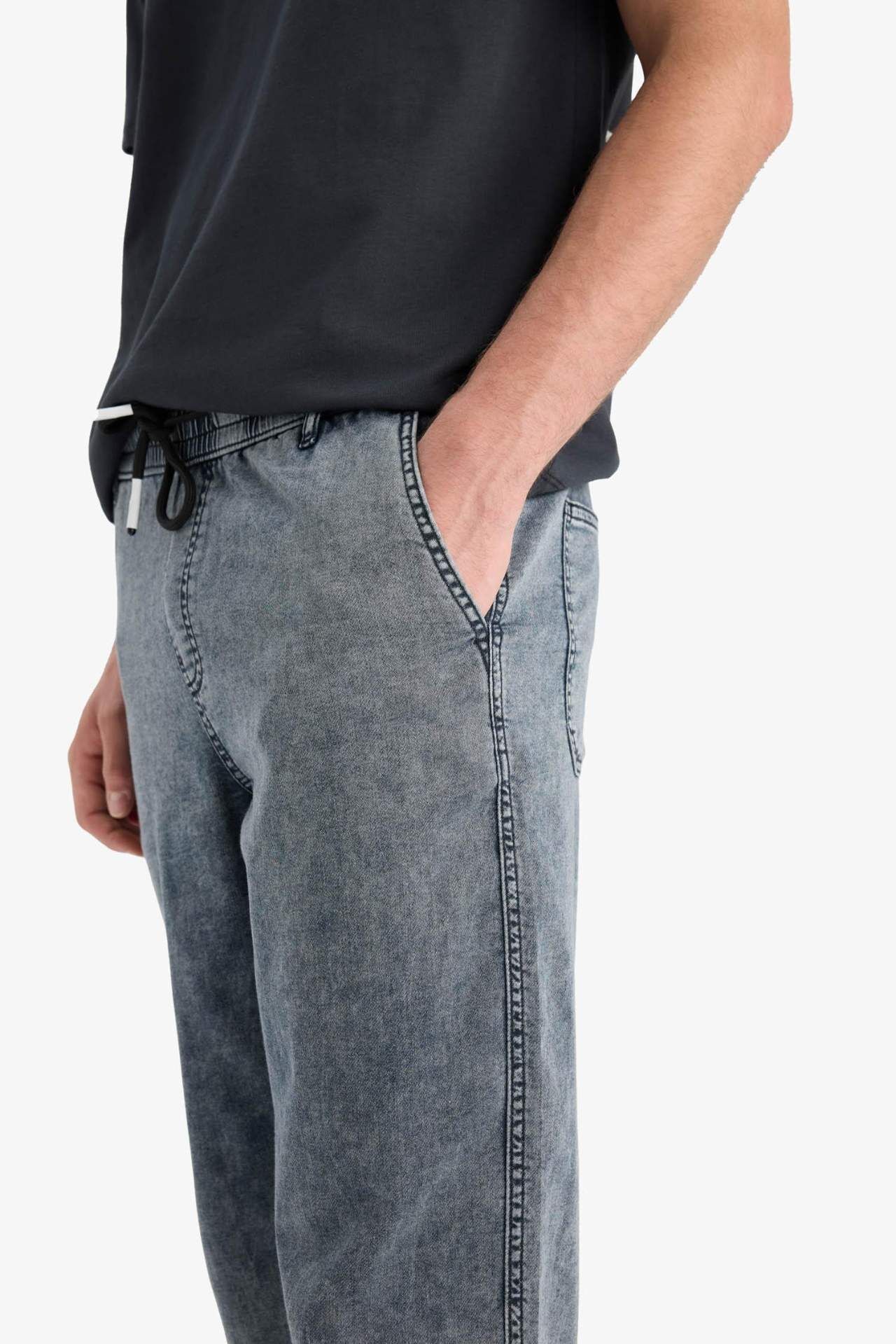 DeFacto Yazlık Wide Leg Geniş Kalıp Beli Lastikli Geniş Paça Jean Kar Yıkamalı Pantolon F3904AX25SMNM83