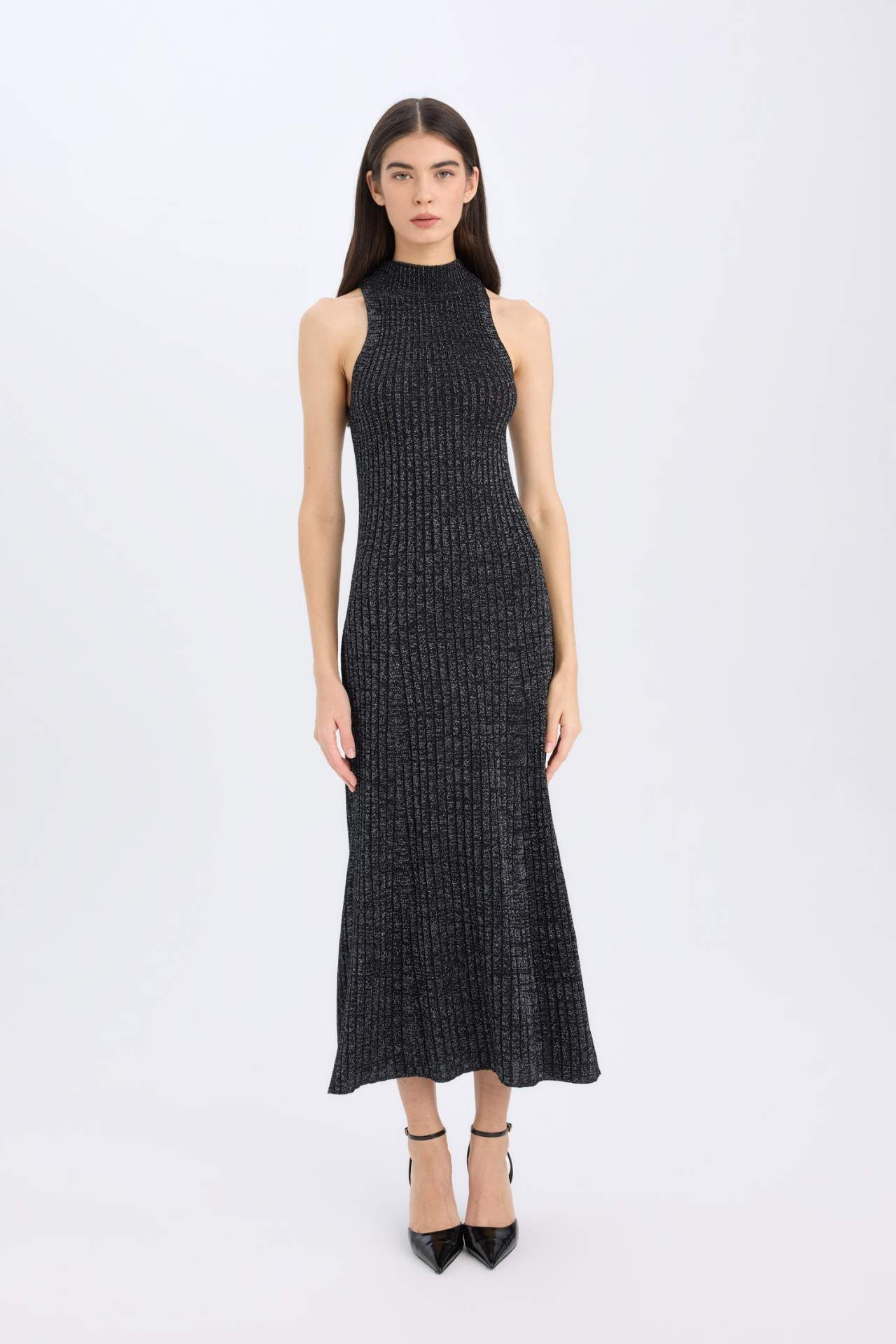Yılbaşı Temalı A Kesim Yarım Balıkçı Yaka Ribana Kolsuz Maxi Elbise