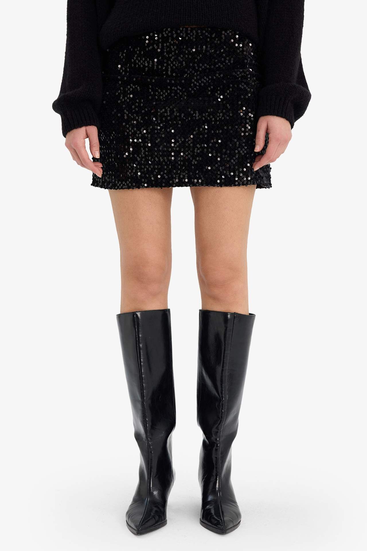 DeFacto Yılbaşı Temalı Kalem Normal Bel Astarlı Payetli Kumaş Mini Etek