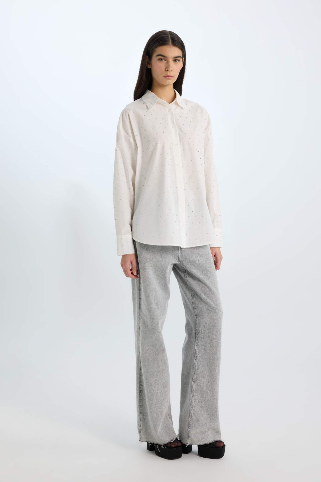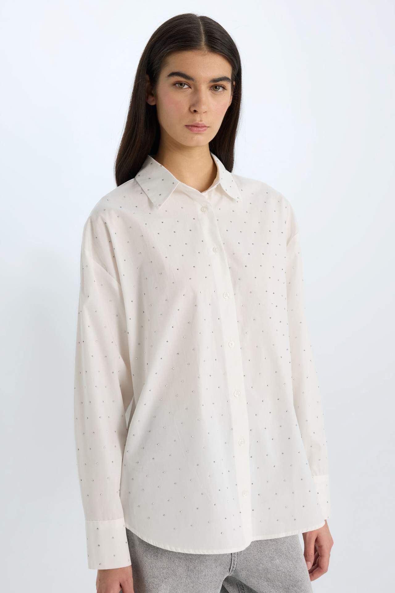 Yılbaşı ruhunu yansıtan oversize fit gömlek, şıklığı ve rahatlığı bir arada sunuyor. Geniş kalıbı ve poplin kumaşı ile öne çıkan bu uzun kollu gömlek, gardırobunuzun favorisi olmaya aday. Şimdi keşfedin ve tarzınıza yeni bir soluk katın. Pamuk 100%,Pamuk 100% Manken Bedeni: Göğüs: 75 Boy: 1,74 Basen: 84 Bel: 56