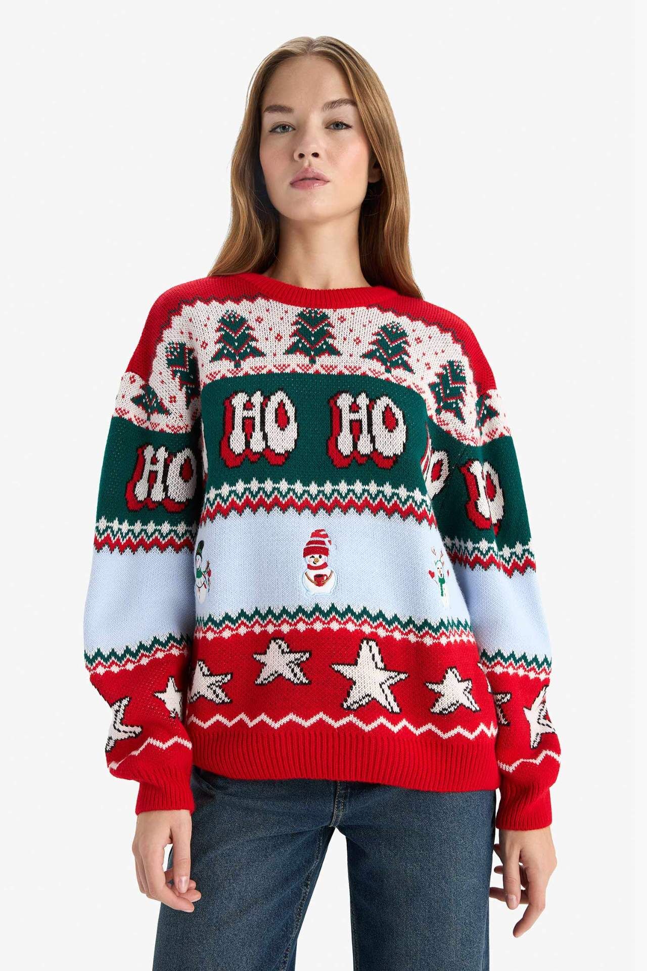 Yılbaşı Temalı Regular Fit Bisiklet Yaka Kazak