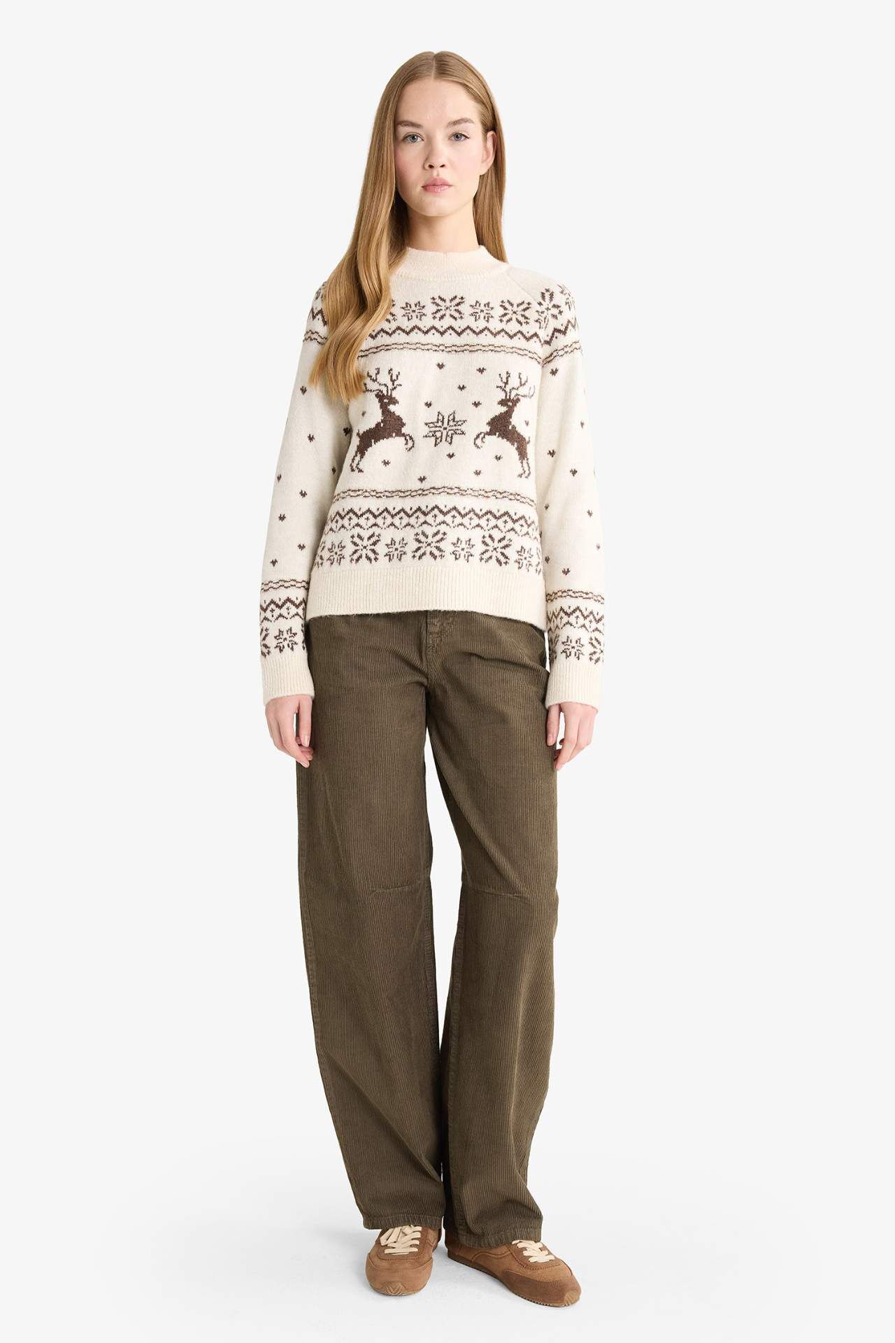 DeFacto Yılbaşı Temalı Regular Fit Bisiklet Yaka Kazak