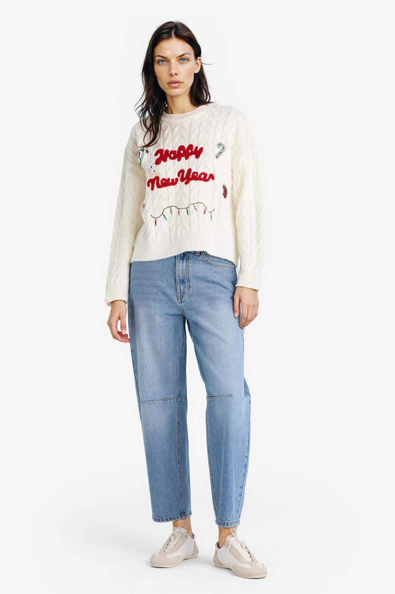 Yılbaşı temalı regular fit bisiklet yaka kazak, eğlenceli ve şık bir görünüm sunar. Rahat kesimi ve yumuşak dokusuyla gün boyu konfor sağlar, sezonun neşesini stilinize taşır. Tatil ve özel gün kombinleri için ideal bir parçadır. Akrilik 73%,Poliester 27%,Akrilik 73%,Poliester 27%,Akrilik 73%,Poliester 27%,Akrilik 73%,Poliester 27%,Akrilik 73%,Poliester 27%,Akrilik 73%,Poliester 27% Manken Bedeni: Göğüs: 83 Boy: 1,78 Basen: 90 Bel: 61