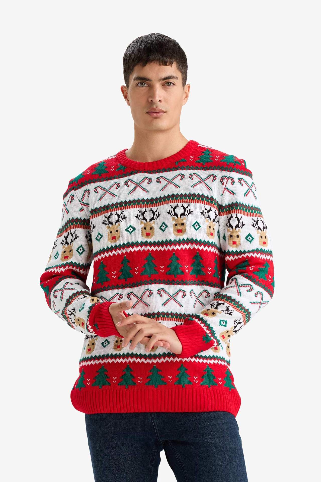 Yumuşak dokusu ve eğlenceli yılbaşı temasıyla öne çıkan regular fit bisiklet yaka triko kazak, rahat kesimiyle gün boyu konfor sağlar. Şık ve neşeli tasarımıyla tatil kombinlerine renk katar. Akrilik 100%,Akrilik 100%,Akrilik 100%,Akrilik 100%,Akrilik 100%,Akrilik 100%,Akrilik 100% Manken Bedeni: Göğüs: 93 Boy: 1,85 Basen: 97 Bel: 87