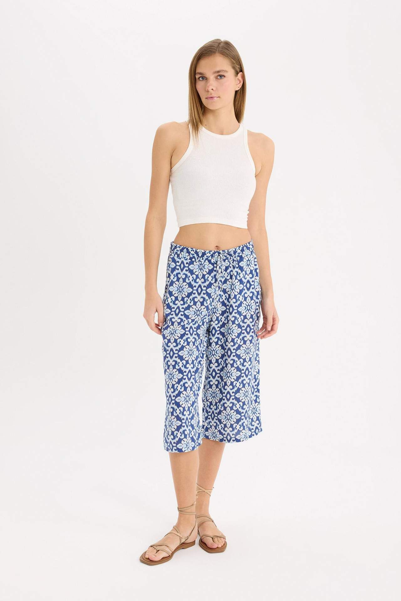 DeFacto Yüksek Bel Crop Fit Viskon Kapri