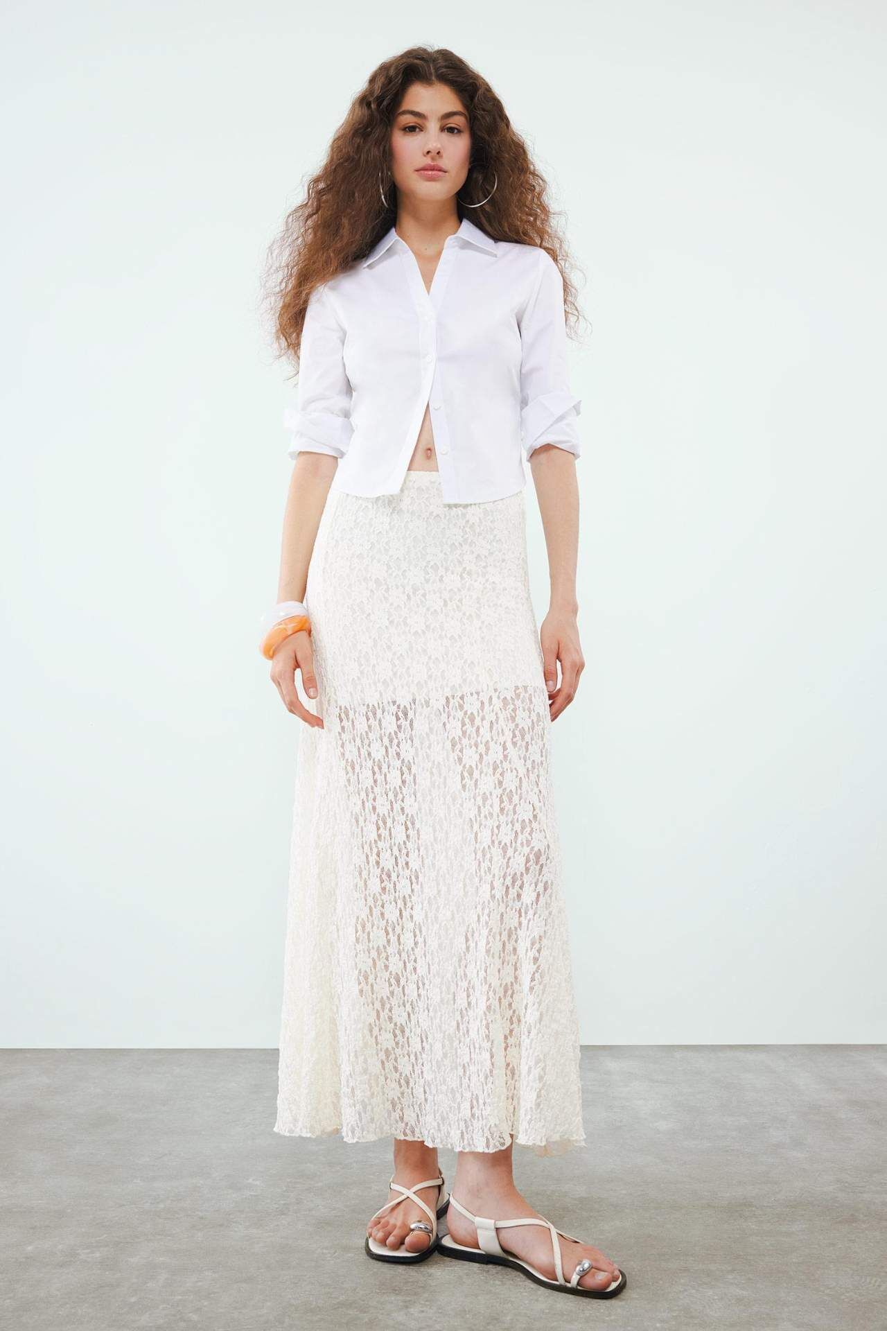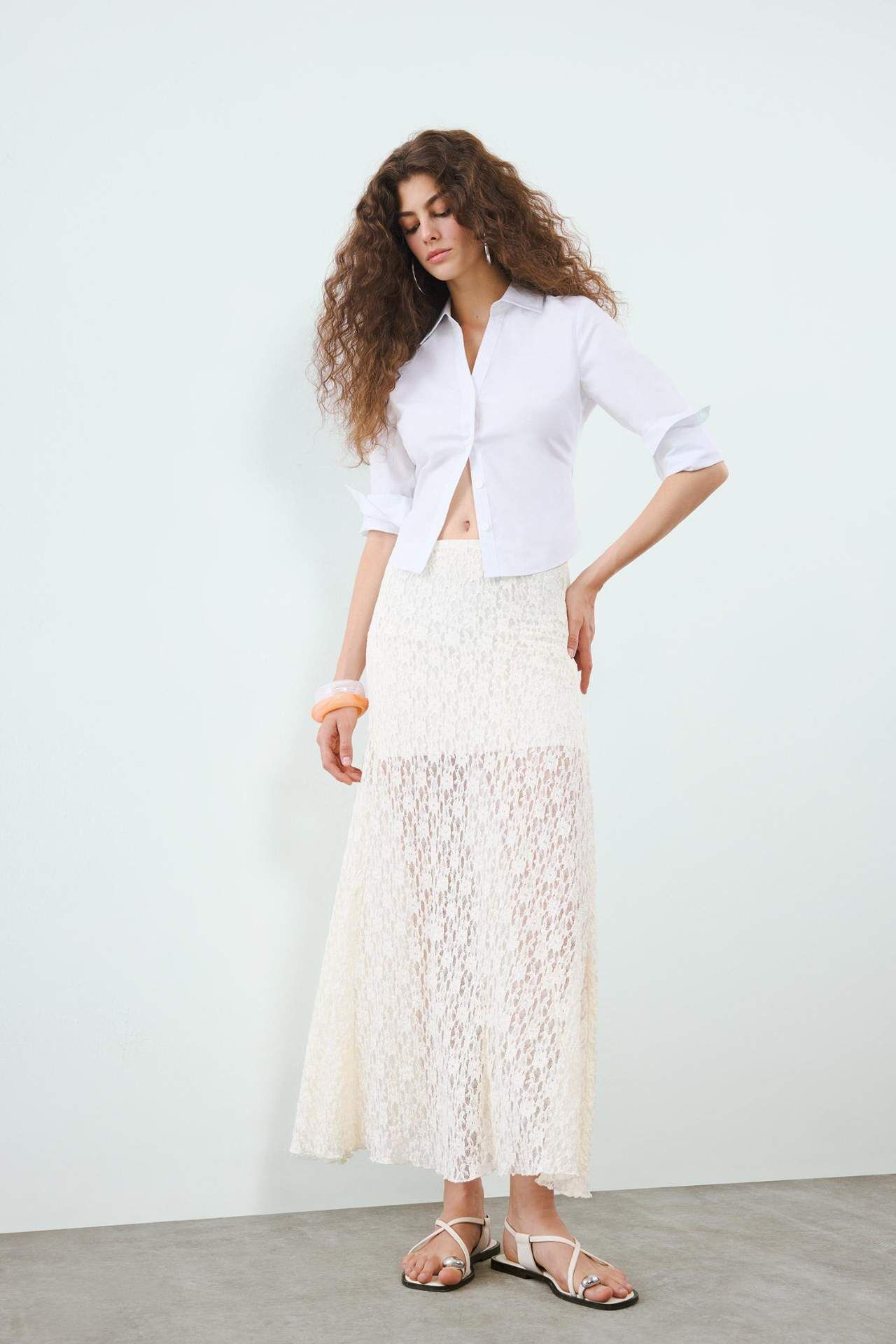 DeFacto Yüksek Bel Dantel Maxi Etek F8063AX25SMER103