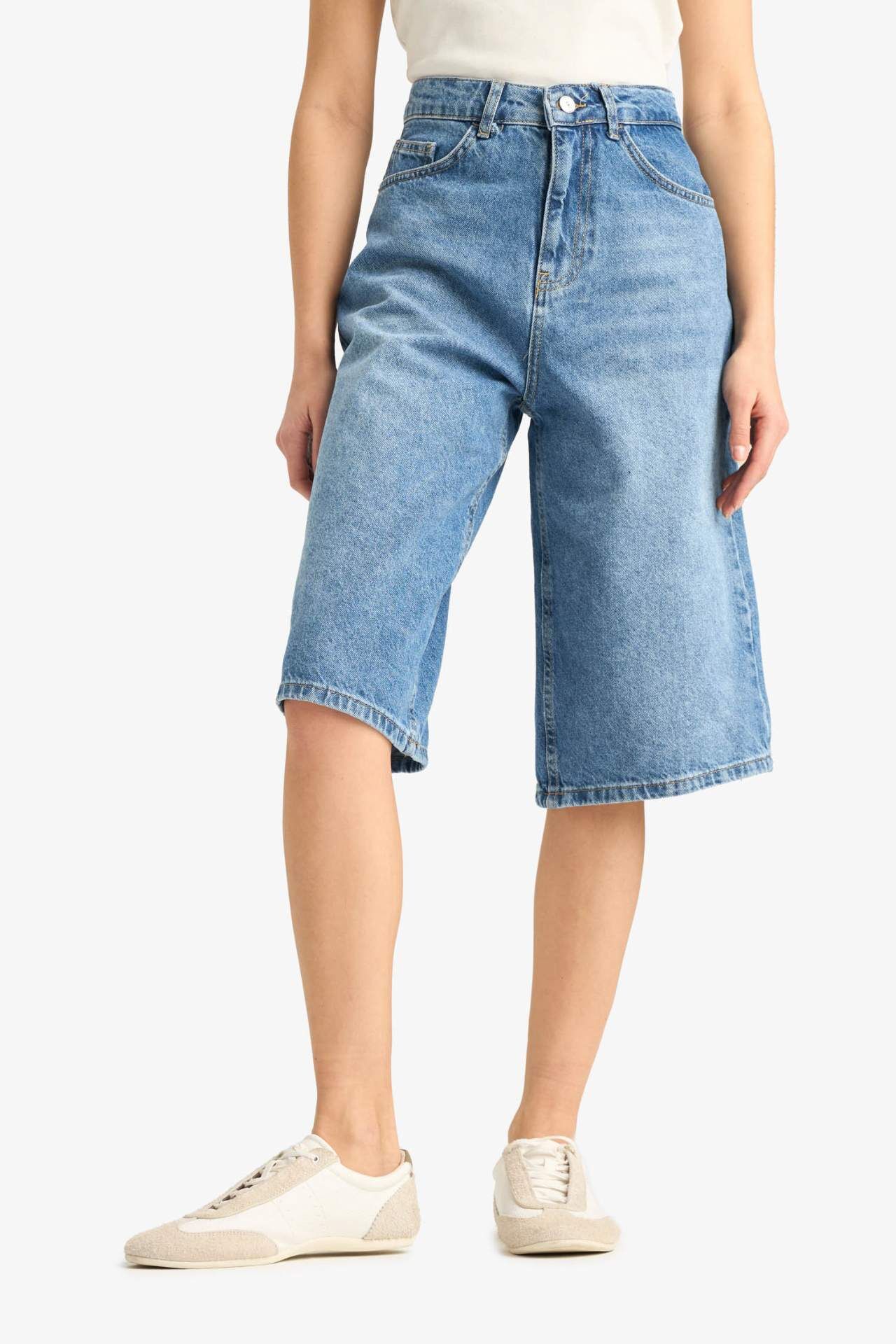 DeFacto Yüksek Bel Jean Bermuda Şort E9040AX25SMNM85