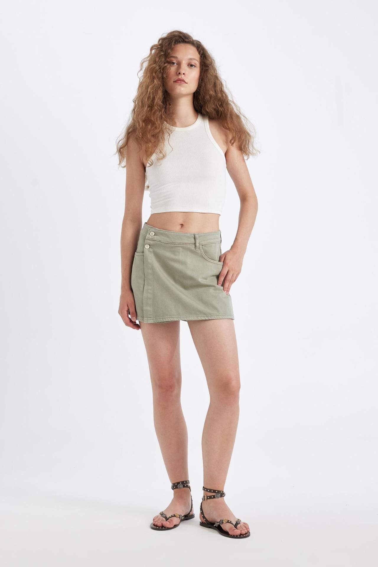 Yüksek Bel Jean Şort Etek: Şıklığı ve rahatlığı bir arada sunan yüksek bel jean şort ile tarzınızı konuşturun. Günlük kullanıma uygun olan bu şort ile her kombin tamamlanır. Kaliteli kumaşı ve şık tasarımı ile her mevsim gardırobunuzun vazgeçilmezi olacak. Pamuk 100%,Pamuk 100% Manken Bedeni: Göğüs: 78 Boy: 1,74 Basen: 89 Bel: 60