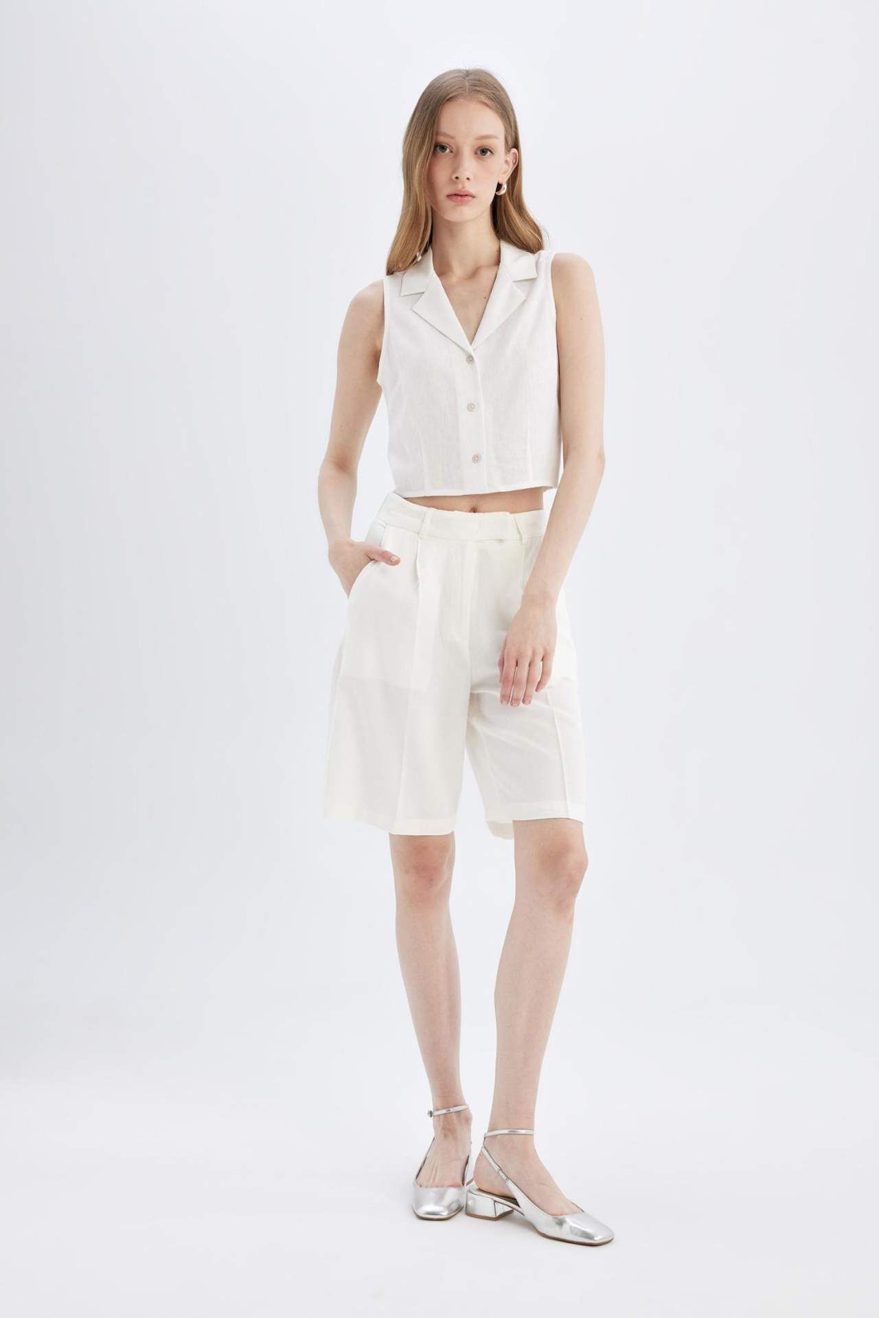 Yüksek Bel Kısa Paça Saten Şort: Şıklığı ve rahatlığı bir arada sunan saten şort, yüksek bel tasarımıyla dikkat çekiyor. Kısa paça detayıyla yaz aylarının vazgeçilmezi olmaya aday. Farklı renk seçenekleriyle her tarza uyum sağlar. Kaliteli kumaşı ve şık duruşuyla gardırobunuzun favorisi olmaya aday. Viskoz 82%,Keten 18%,Viskoz 82%,Keten 18% Manken Bedeni: Göğüs: 83 Boy: 1,79 Basen: 90 Bel: 58