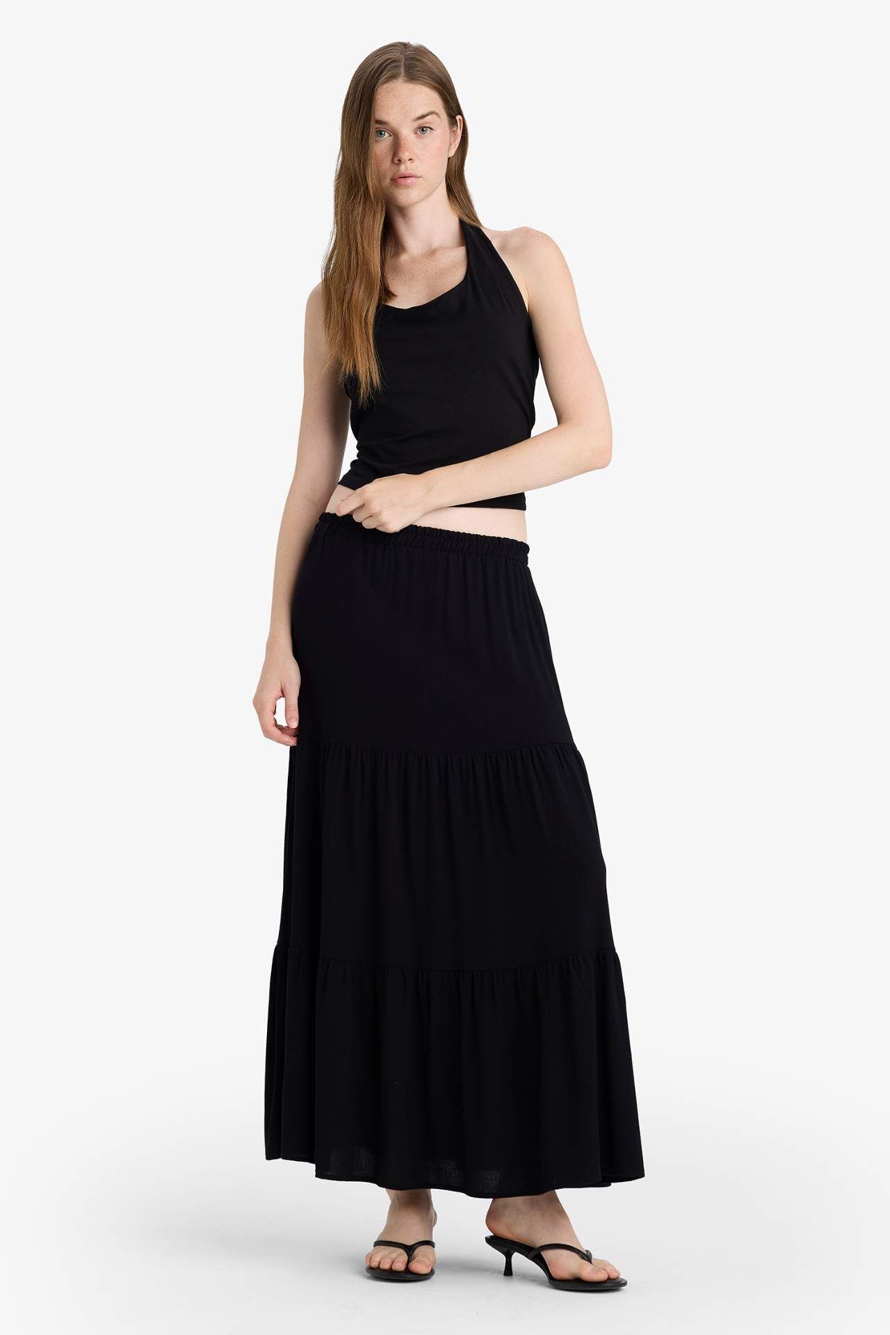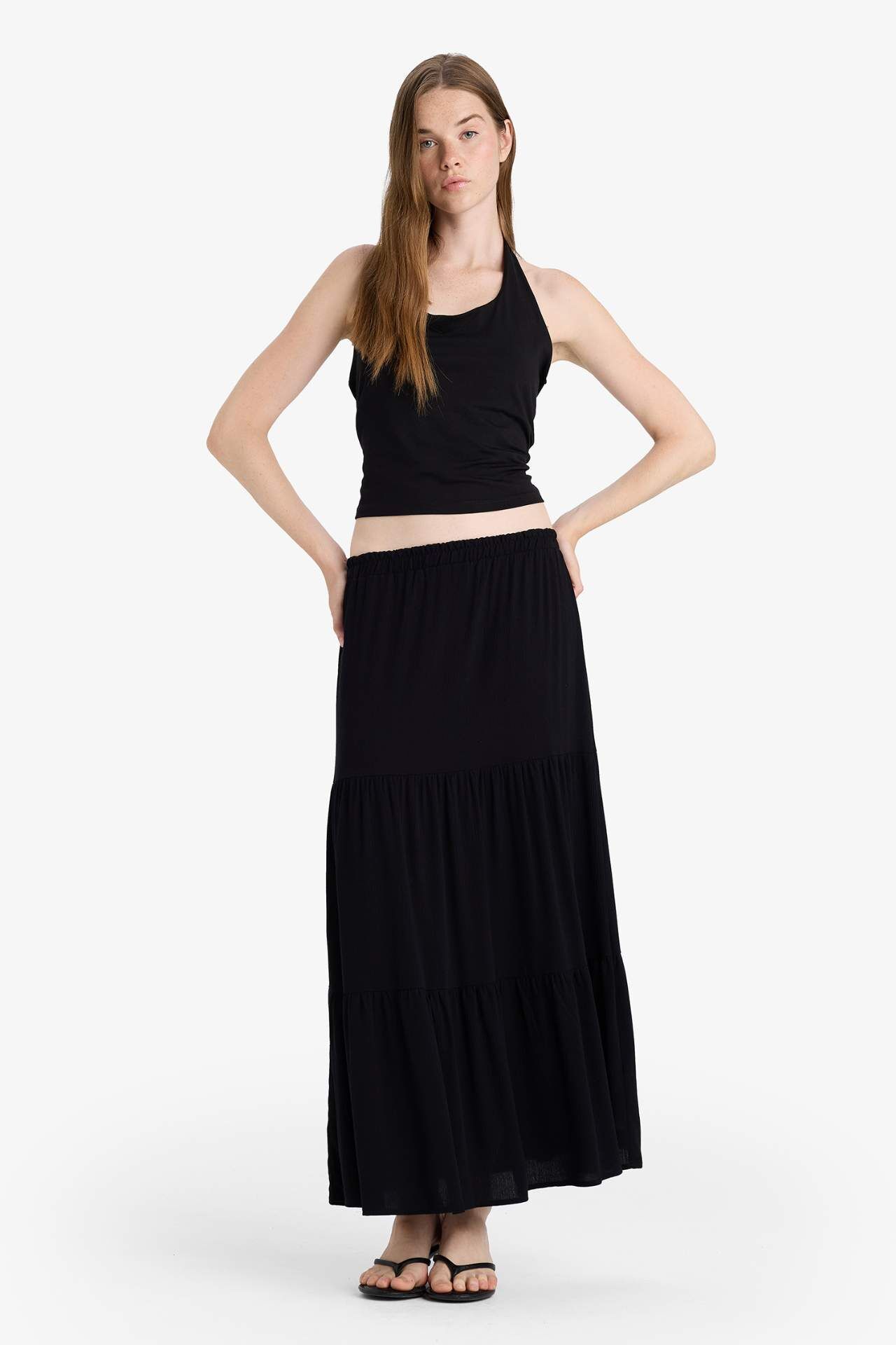 DeFacto Yüksek Bel Krinkıl Viskon Maxi Etek