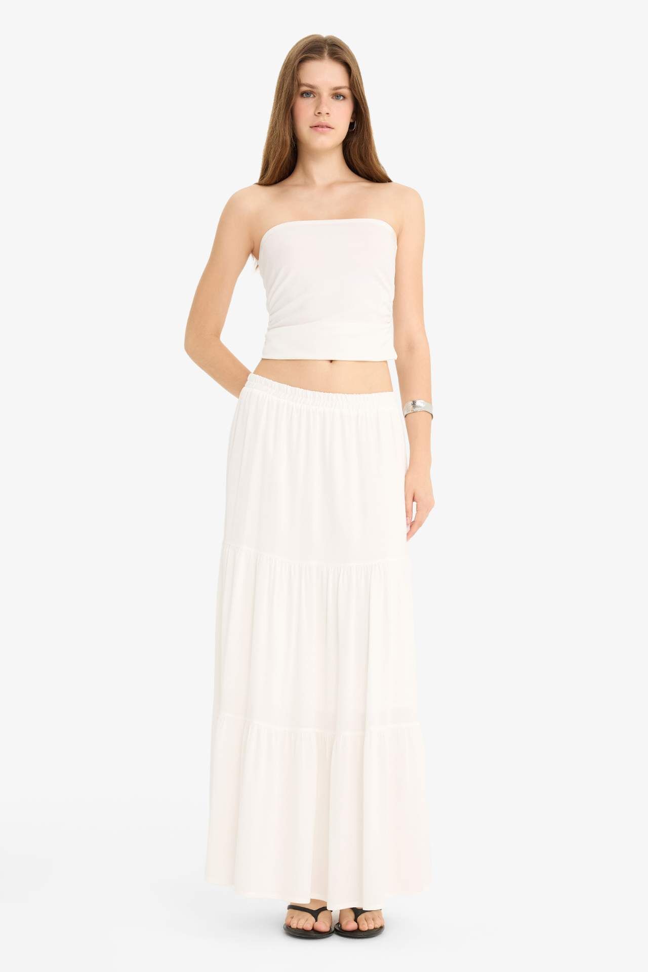 DeFacto Yüksek Bel Krinkıl Viskon Maxi Etek
