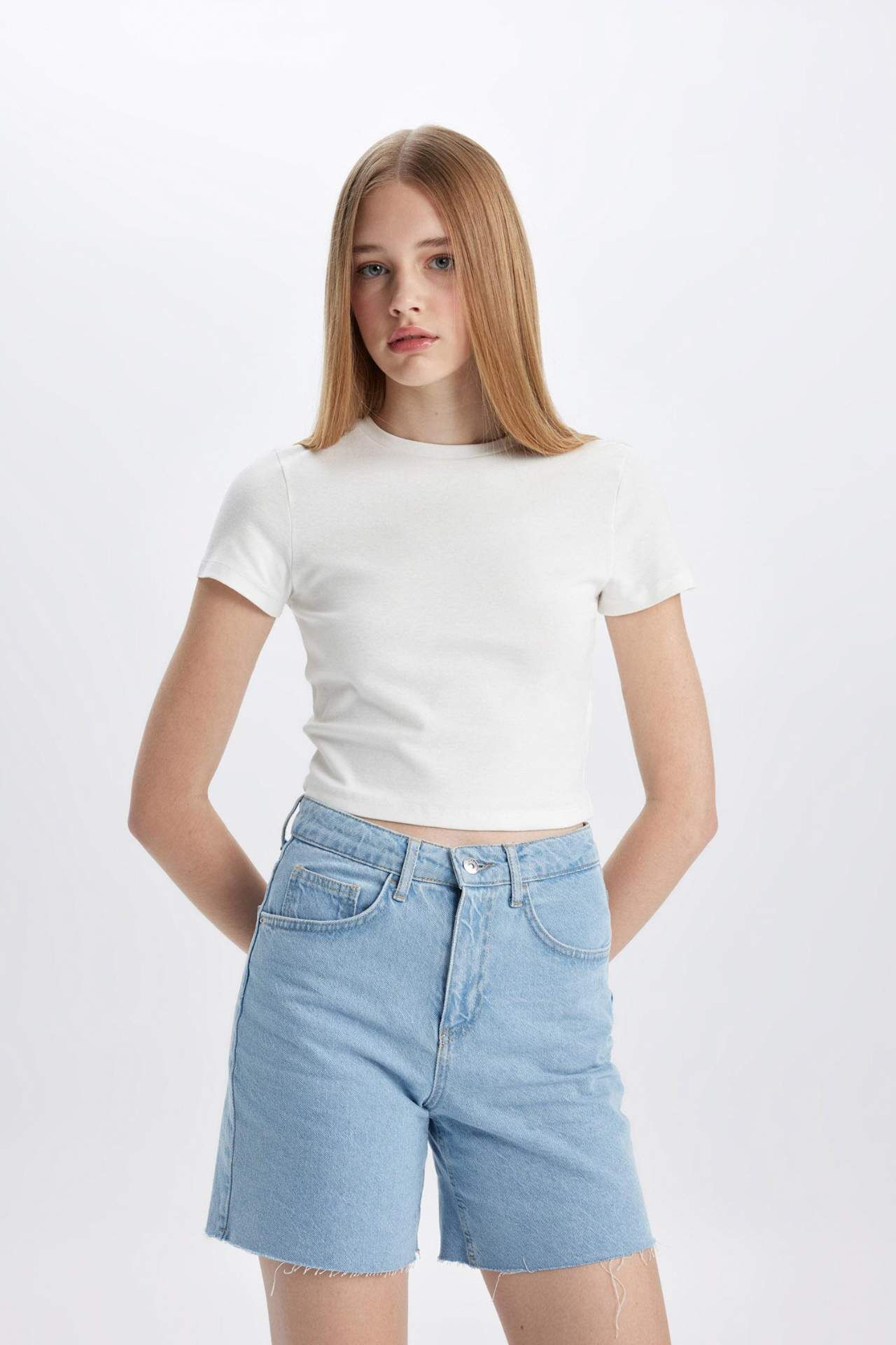 DeFactoFit Yüksek Bel Paça Ucu Kesik Jean Şort C2454AX24HSNM28