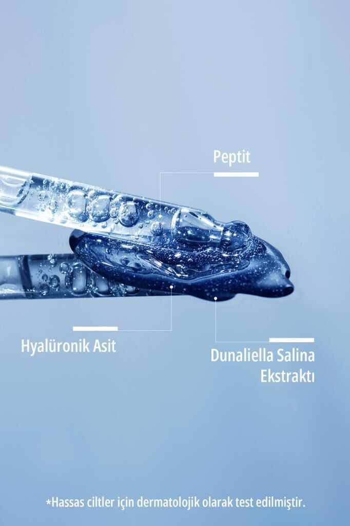 İçindekiler: Aqua, Propylene Glycol, Phenoxyethanol,Panthenol, Polyacrylate Crosspolymer-6, Ethylhexylglycerin, Dunaliella SalinaExtract, Palmitoyl Tripeptide-5, Sodium Hyaluronate, Citric Acid, SodıumBenzoat, Pantolactone, Potassium Sorbate.