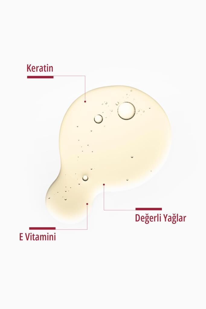 İçindekiler: Ricins Communes Seed Oil (Hint Yağı, Prunus Amygdalus Dulcis Oil (T. Badem Yağı), Sesamum Indicum Seed Oil (Susam Yağı), Corylus Avellana Seed Oil (Fındık Yağı), Triticum Vulgare Germ Oil (Buğday Yağı), Cocos Nucifera Oil (Hindistan Cevizi Yağı), Aloe Barbadensis Leaf (Aloevera Yağı), Butyrospermum Parkii Butter (Shea Yağı), Nigella Sativa Seed Oil (Çörekotu Yağı), Simmondsia Chinensis Seed Oil (Jojoba Yağı), Hydrolyzed Keratin, Urtica Dioica (Isırgan Yağı), Tocopheryl Acetate (Vitamin E), Isopropyl Myristate.