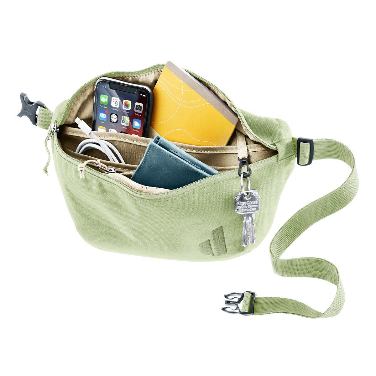 Deuter Avengo, minimalist crossbody çantası, çevre dostu, kaynak verimli üretim uygulamaları kullanılarak yapılan bileşenlerle % 100 geri dönüştürülmüş malzemelerden yapılmıştır. Green Button sertifikasına sahip bir bluesign® ürünüdür; aynı zamanda PFC içermez. Geniş bir ana bölme, fermuarlı ön cep ve ayarlanabilir bel kemeri, şehir kaşiflerinin değerli eşyalarını ve diğer kişisel eşyalarını şık bir şekilde ve vücutlarına yakın tutabileceği anlamına gelir.