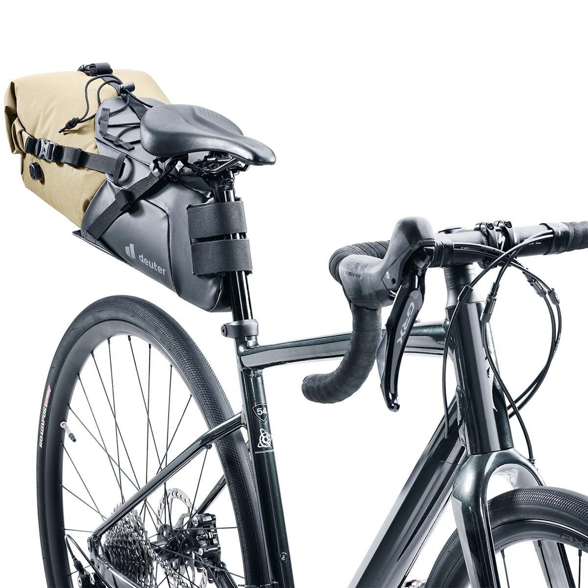 Gidon ve sele çantalarının iki parçalı yapısı, hızlı yükleme ve boşaltma sağlar. Kısa bir mola sırasında, kuru çanta kolayca çıkarılabilirken emniyet kemeri bisiklette kalır.