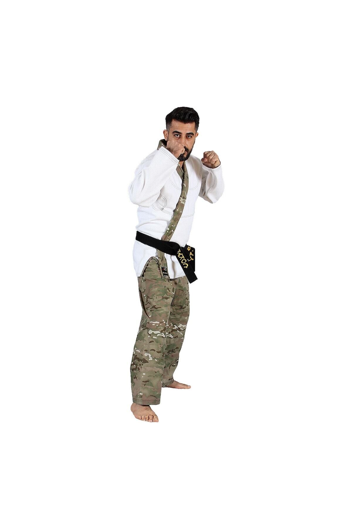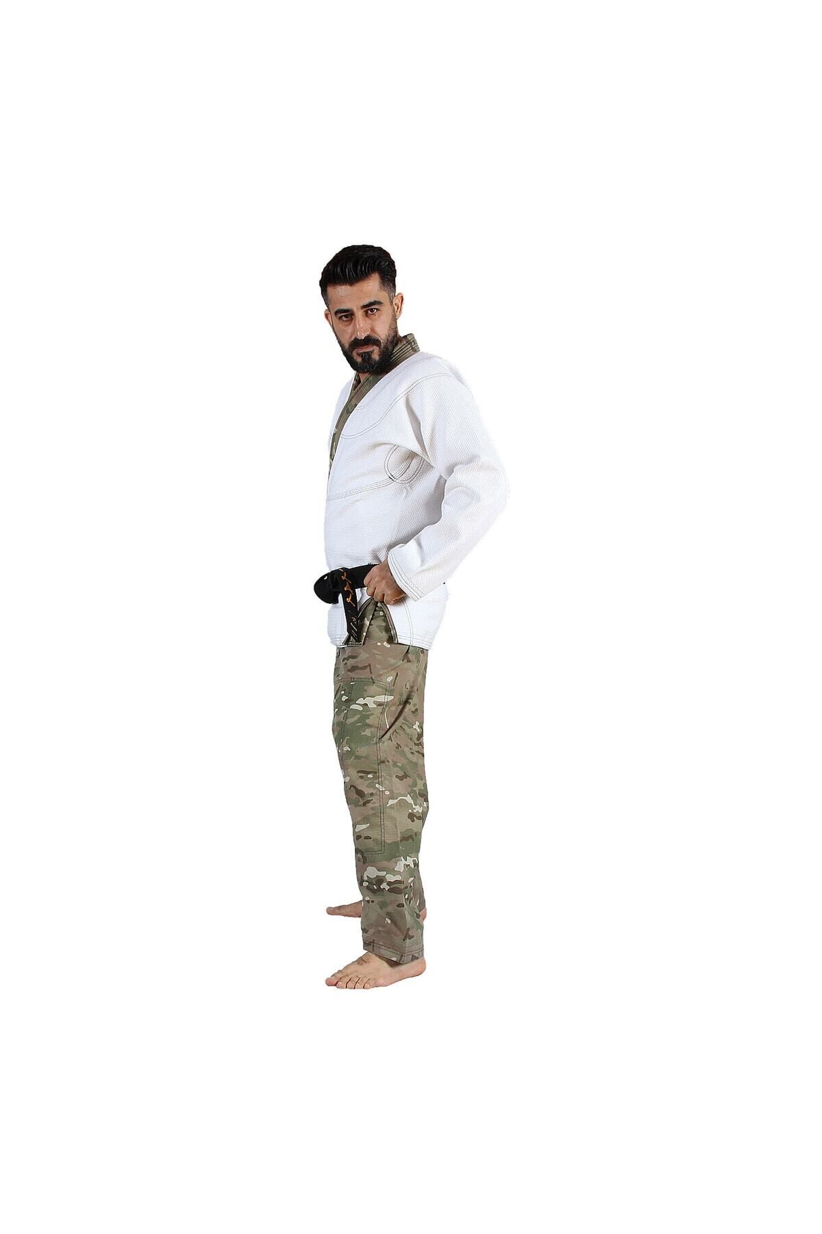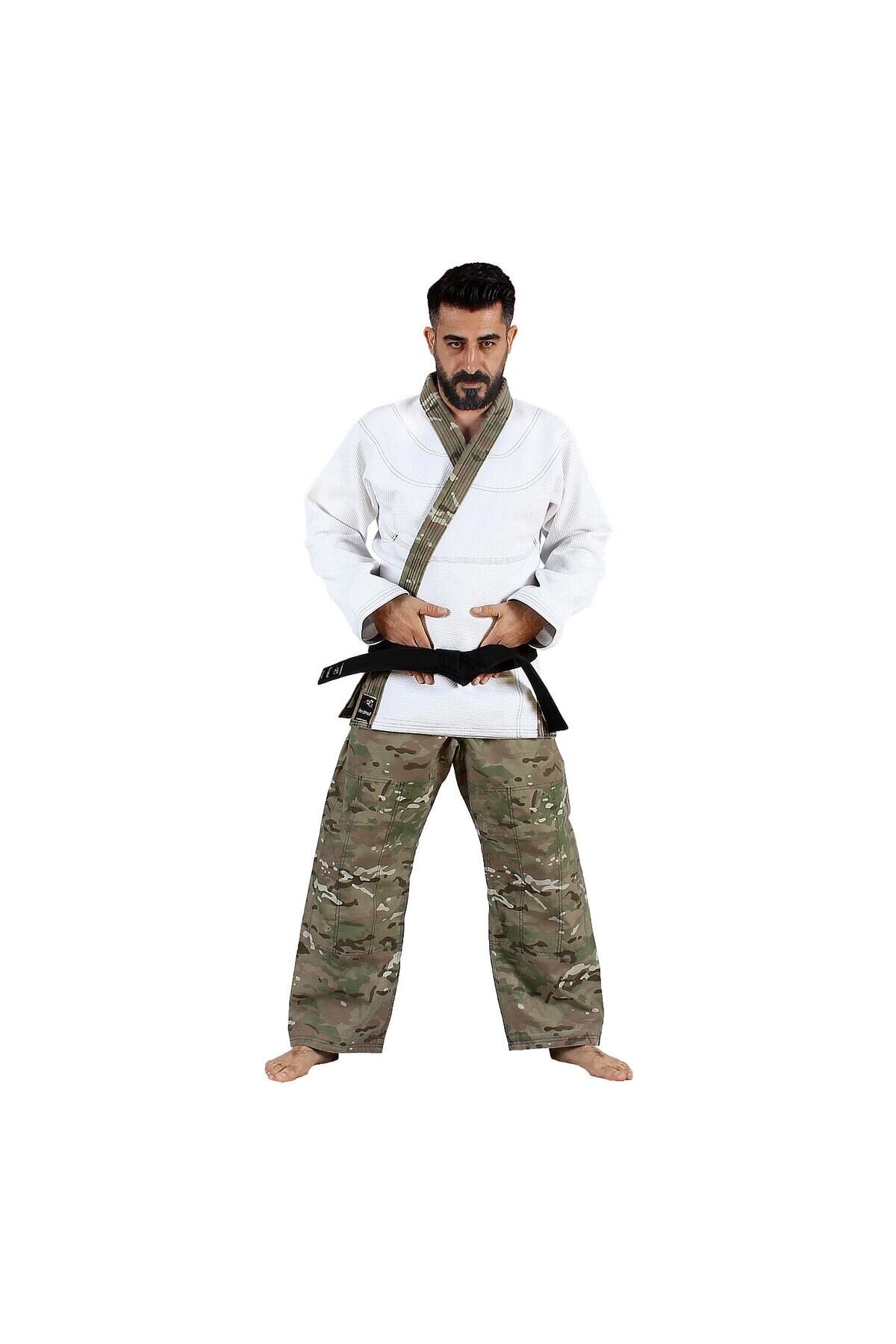 Jiu Jutsu için özel olarak 575gr/m² %100 pamuk ipliğinden ve gabardin pike dokuma kumaştan üretilmiştir.
