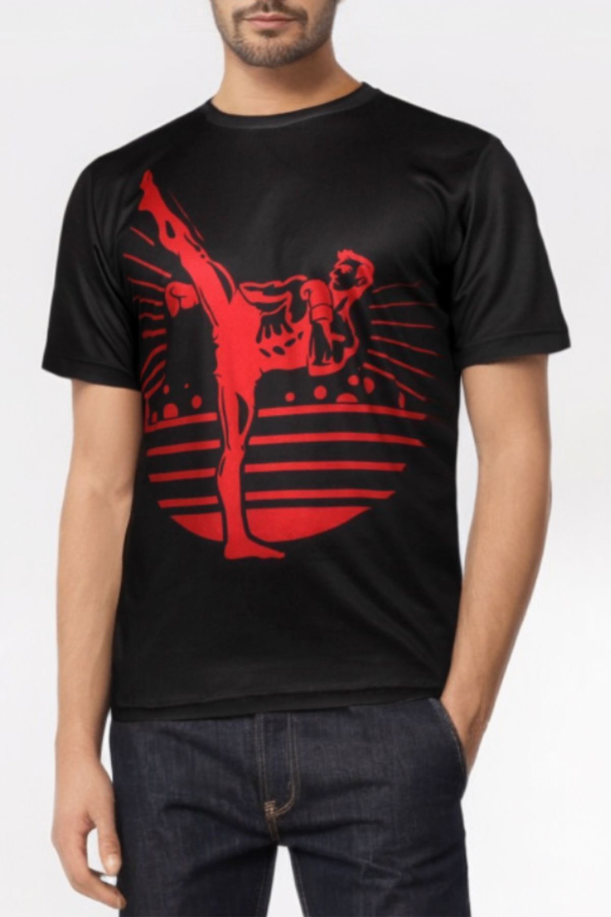 DO-SMAI Dijital Baskılı Fitness Boks Muay Thai Antrenman Tişörtü Spor T-shirt Kbt077 - Siyah