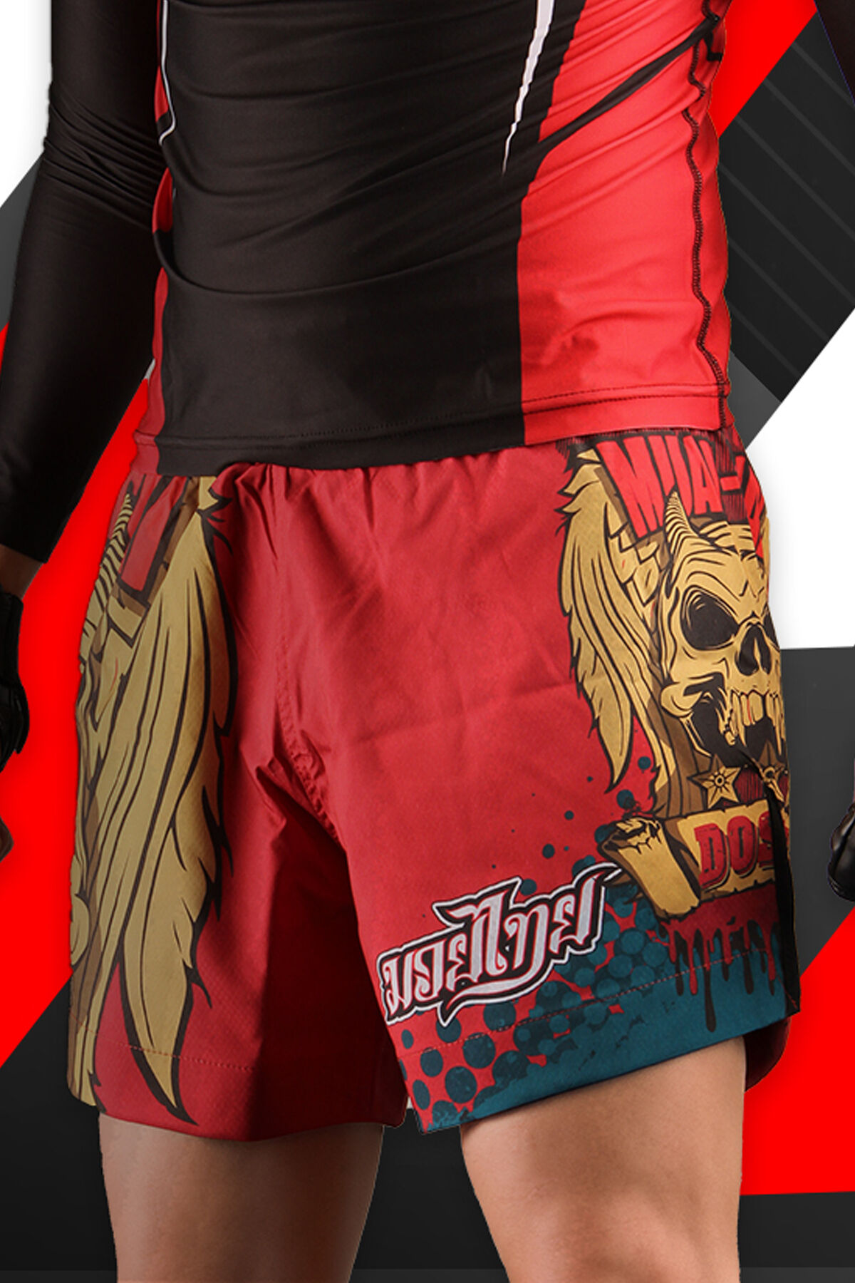 DO-SMAI Dijital Baskılı Strong Kick Boks Fitness Boks Muay Thai Antrenman Şortu Spor Şort Mts212 - Kırmızı