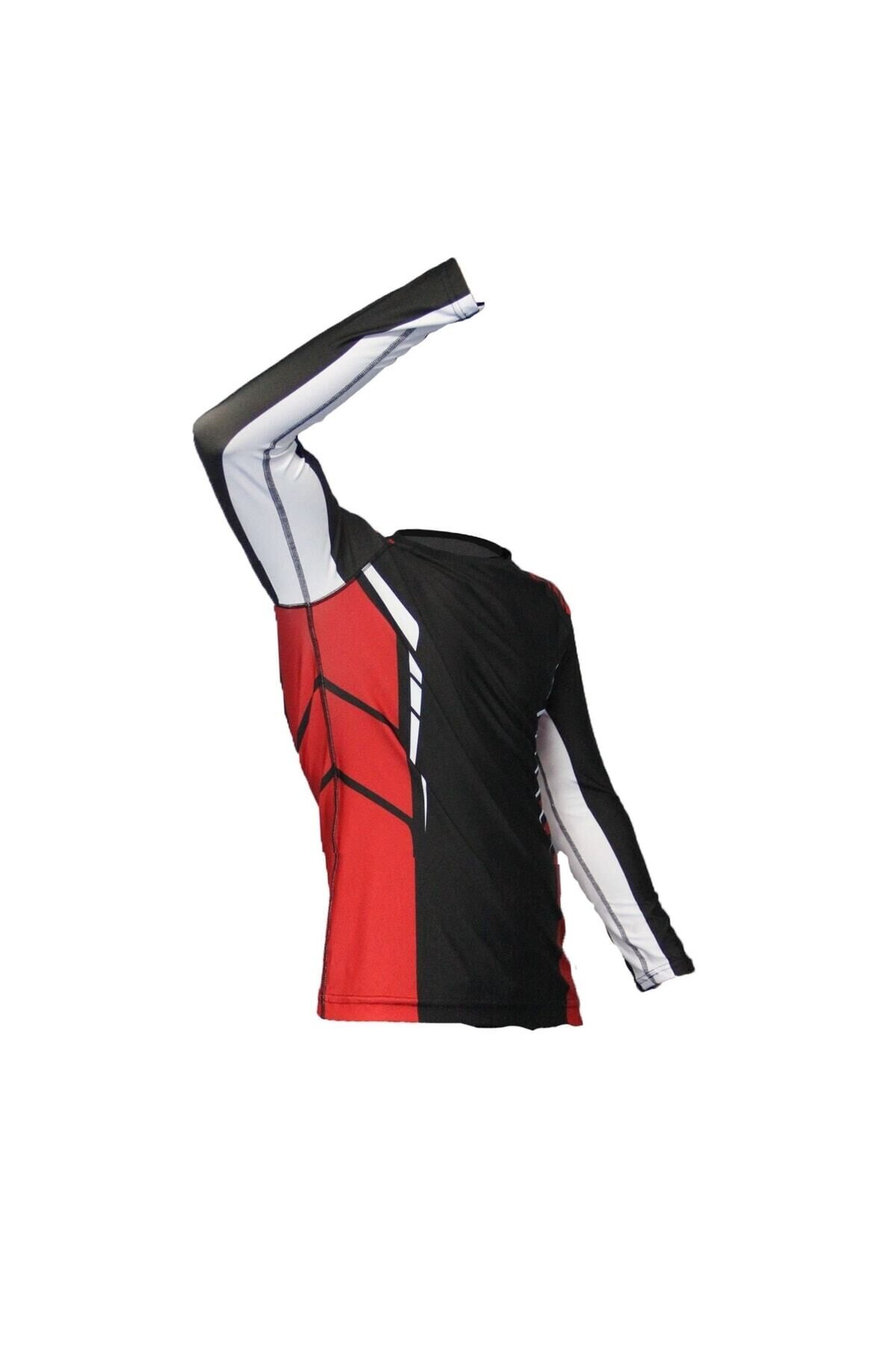 DO-SMAI Dijital Baskılı Uzun Kollu Long Sleeve Rashguard Spor Shirt Rg071 - Siyah - Kırmızı