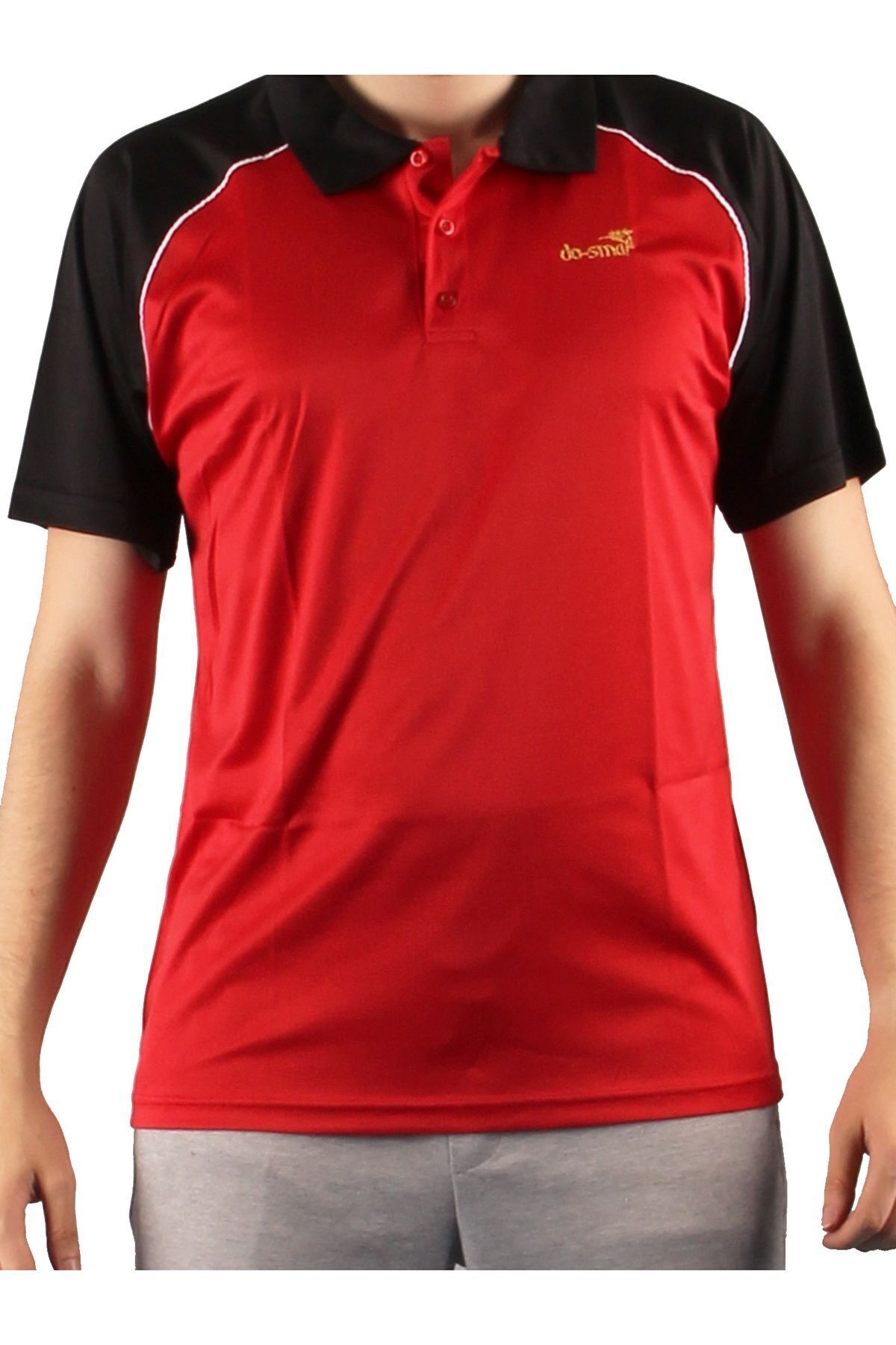 DO-SMAI Polo Yaka Performans Antrenman Sporcu T-Shirt PYT103 - Siyah Kırmızı