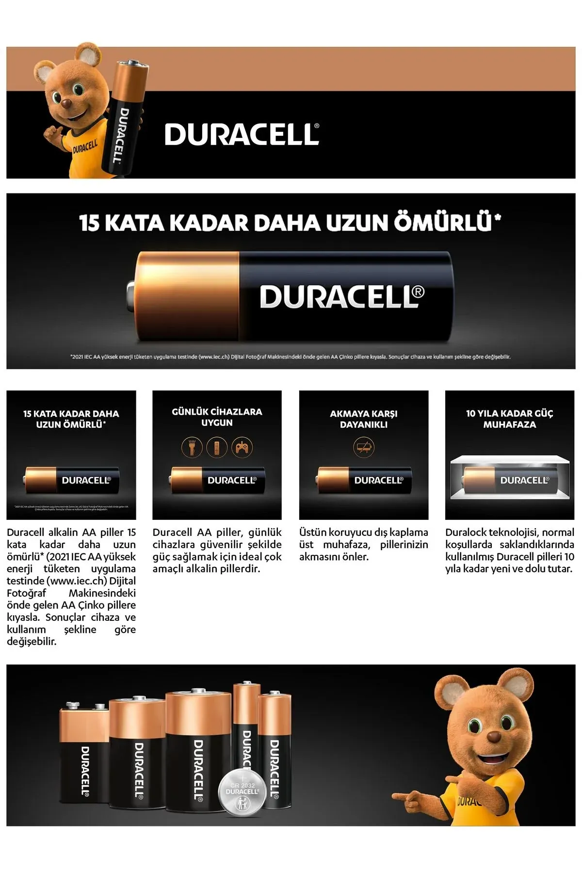 • Duracell AA piller, günlük cihazlara güvenilir şekilde güç sağlamak için ideal çok amaçlı alkalin pillerdir.