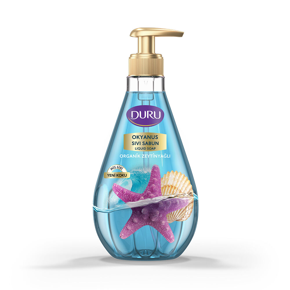 Duru Sıvı Sabun bitkisel nemlendiriciler ve saf su ile buluştu. Yeni Duru Organik İçerikli Okyanus Tazeliği Sıvı Sabun, ellerinizi nazikçe temizlerken içeriğindeki 5 farklı nemlendirici ile ellerinize yumuşak bir dokunuş bırakır, canlandıran kokusu ile her yıkamada içinizi ferahlatır.