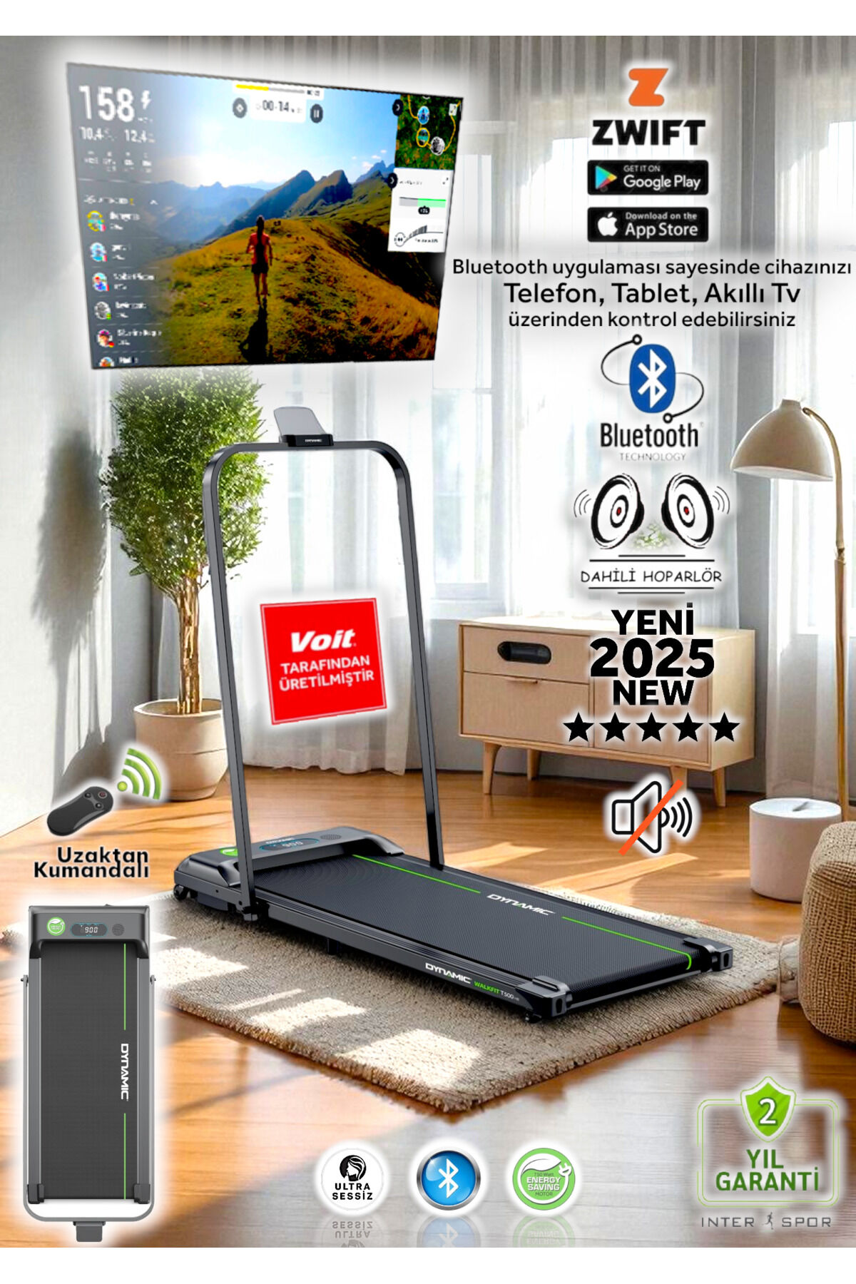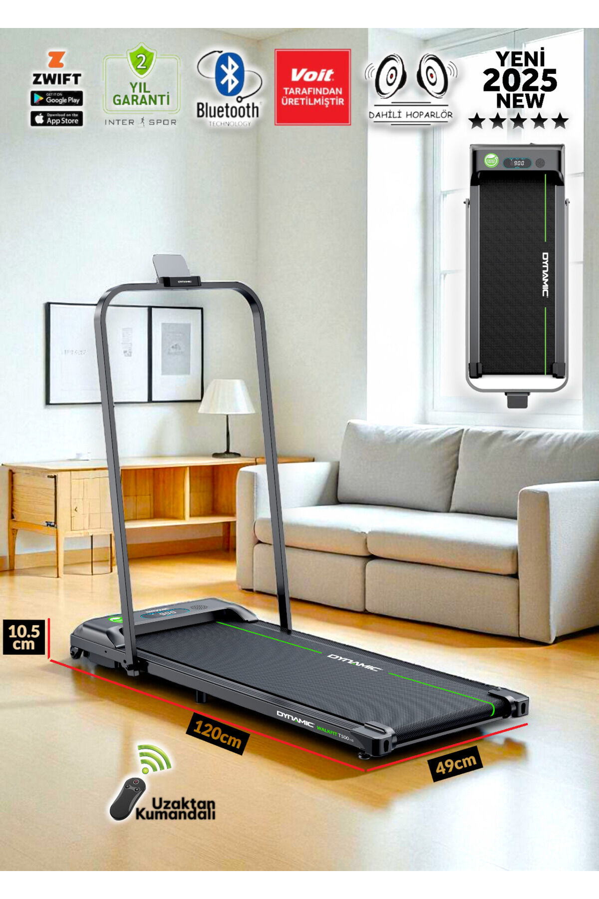 Dynamic Walkfitpad T500 Bluetooth'lu Hoparlörlü Enerji Tasarruflu Uzaktan Kumandalı Koşu Bandı
