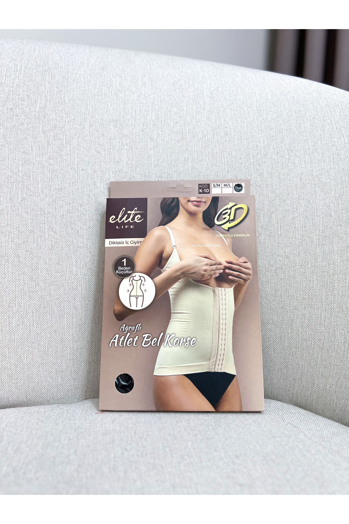 Lastikli bel detayı, korsenin vücuda mükemmel uyum sağlamasına yardımcı olur.