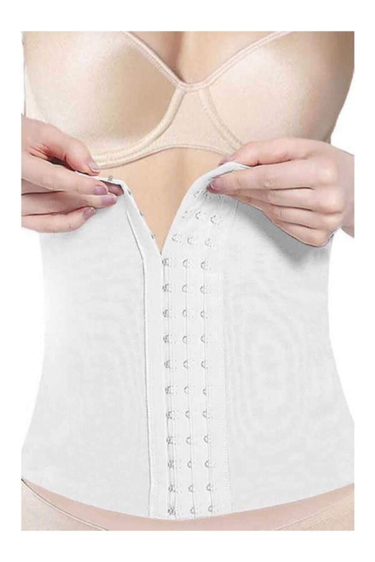 Kadın 886 Ayarlanabilir Agraflı Bel Korse Kaymayı Önleyen Silikon Bant - Beyaz