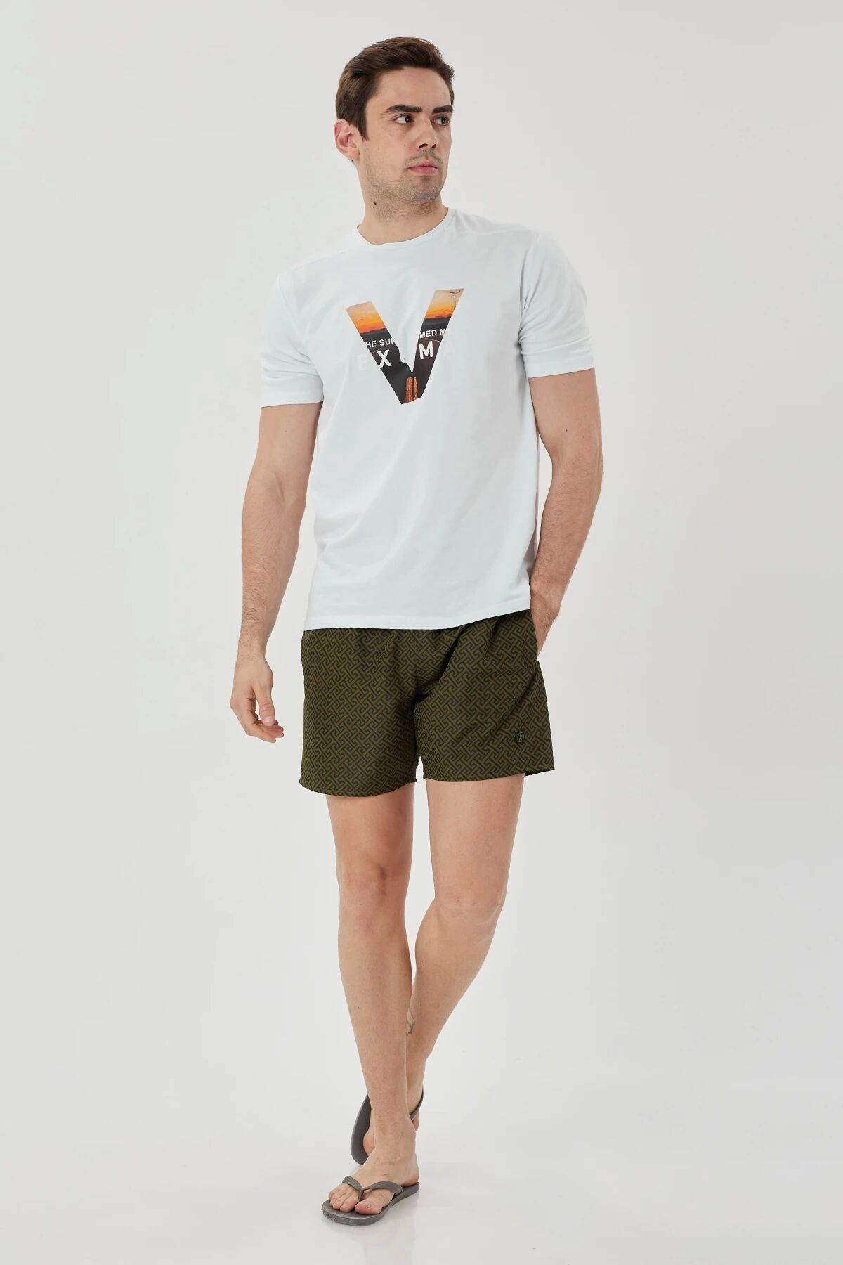 Exuma Erkek Baskılı Deniz Şortu 1415031 108-khakı prınt