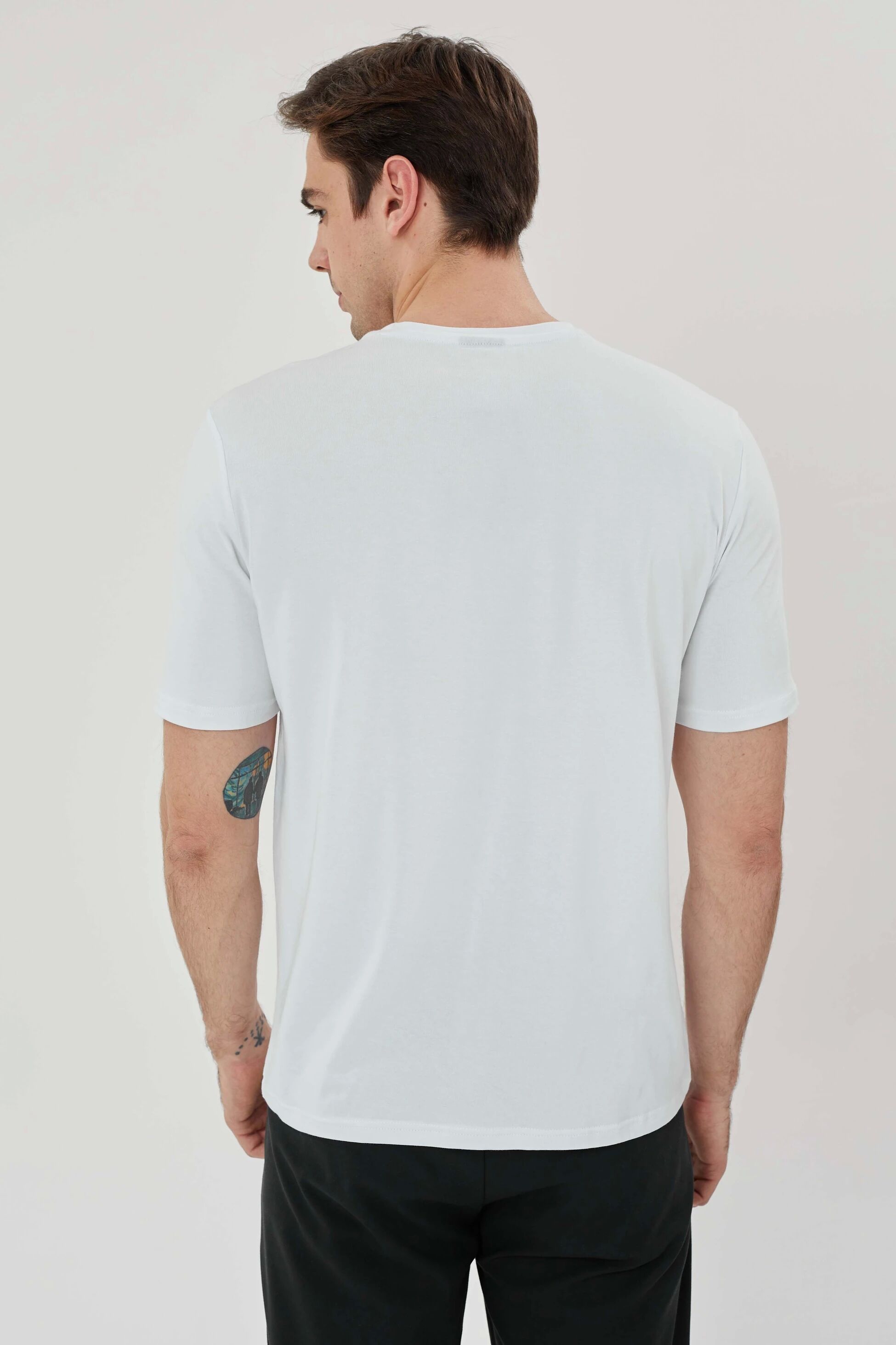 %100 pamuklu malzeme, t-shirtünüzü yumuşak ve nefes alabilir kılarak gün boyu konfor sağlar. Regular fit kesimi, vücuda hoş bir uyum sağlarken rahat hareket etmenizi sağlar.