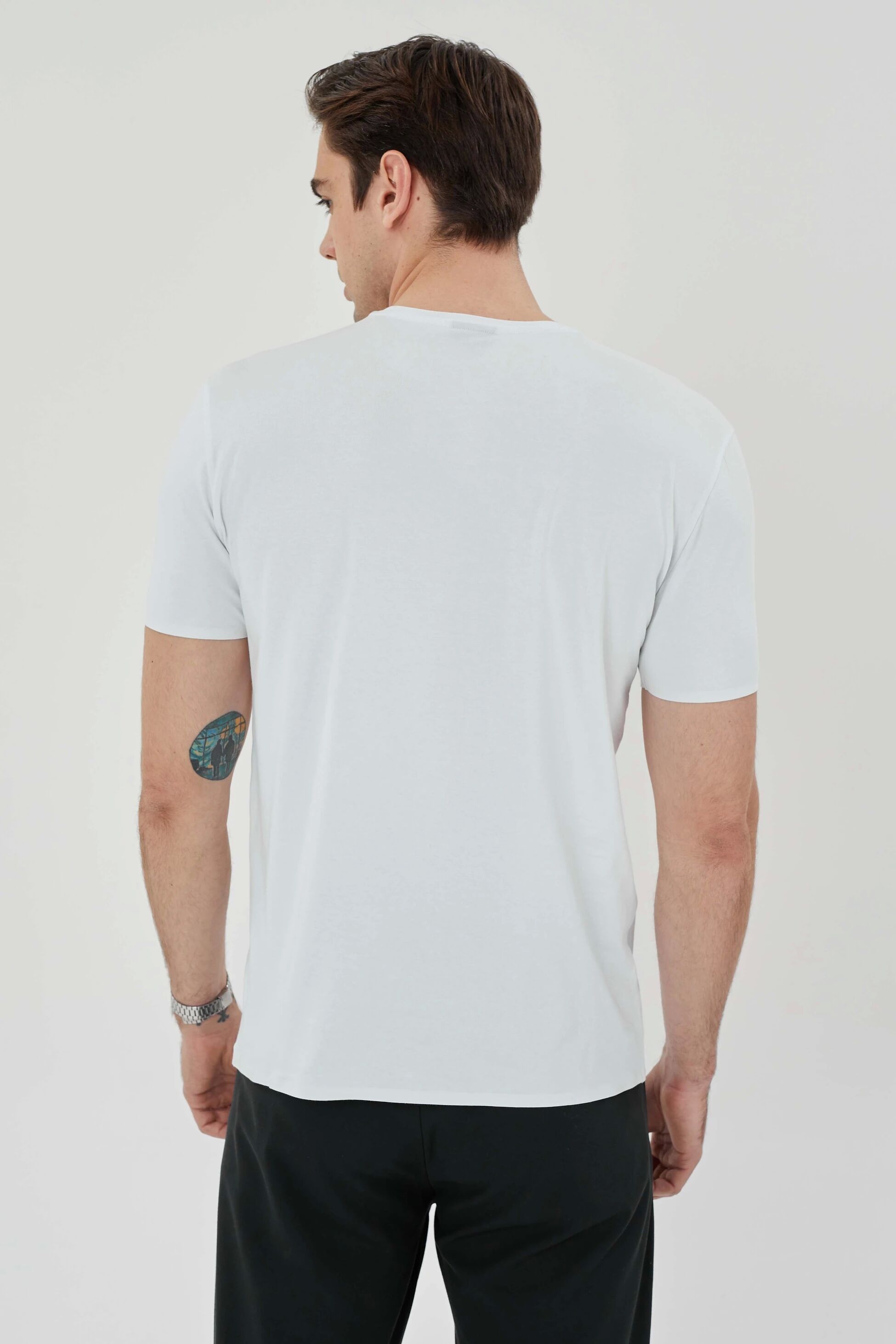 %100 pamuklu malzeme, t-shirtünüzü yumuşak ve nefes alabilir kılarak gün boyu konfor sağlar. Regular fit kesimi, vücuda hoş bir uyum sağlarken rahat hareket etmenizi sağlar.
