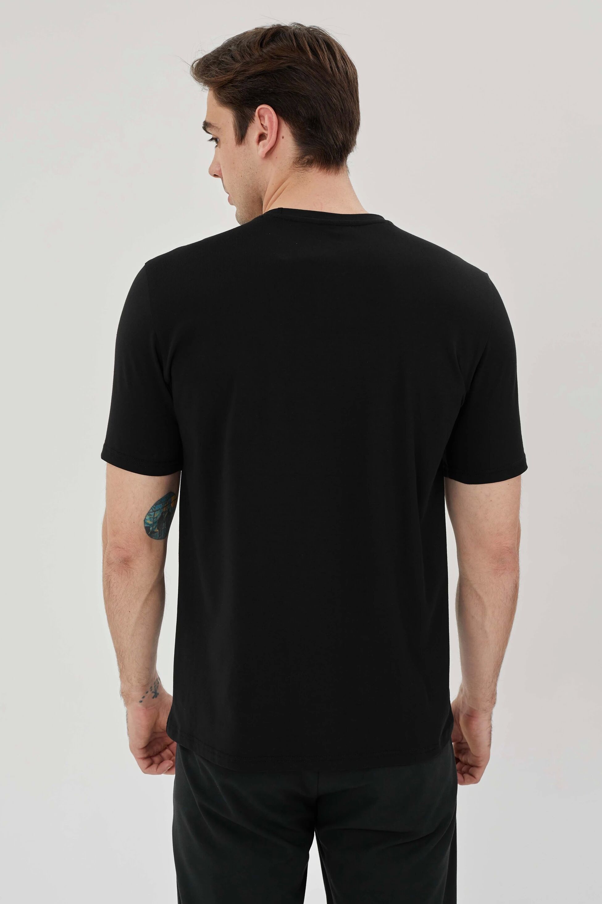 %100 pamuklu malzeme, t-shirtünüzü yumuşak ve nefes alabilir kılarak gün boyu konfor sağlar. Regular fit kesimi, vücuda hoş bir uyum sağlarken rahat hareket etmenizi sağlar.