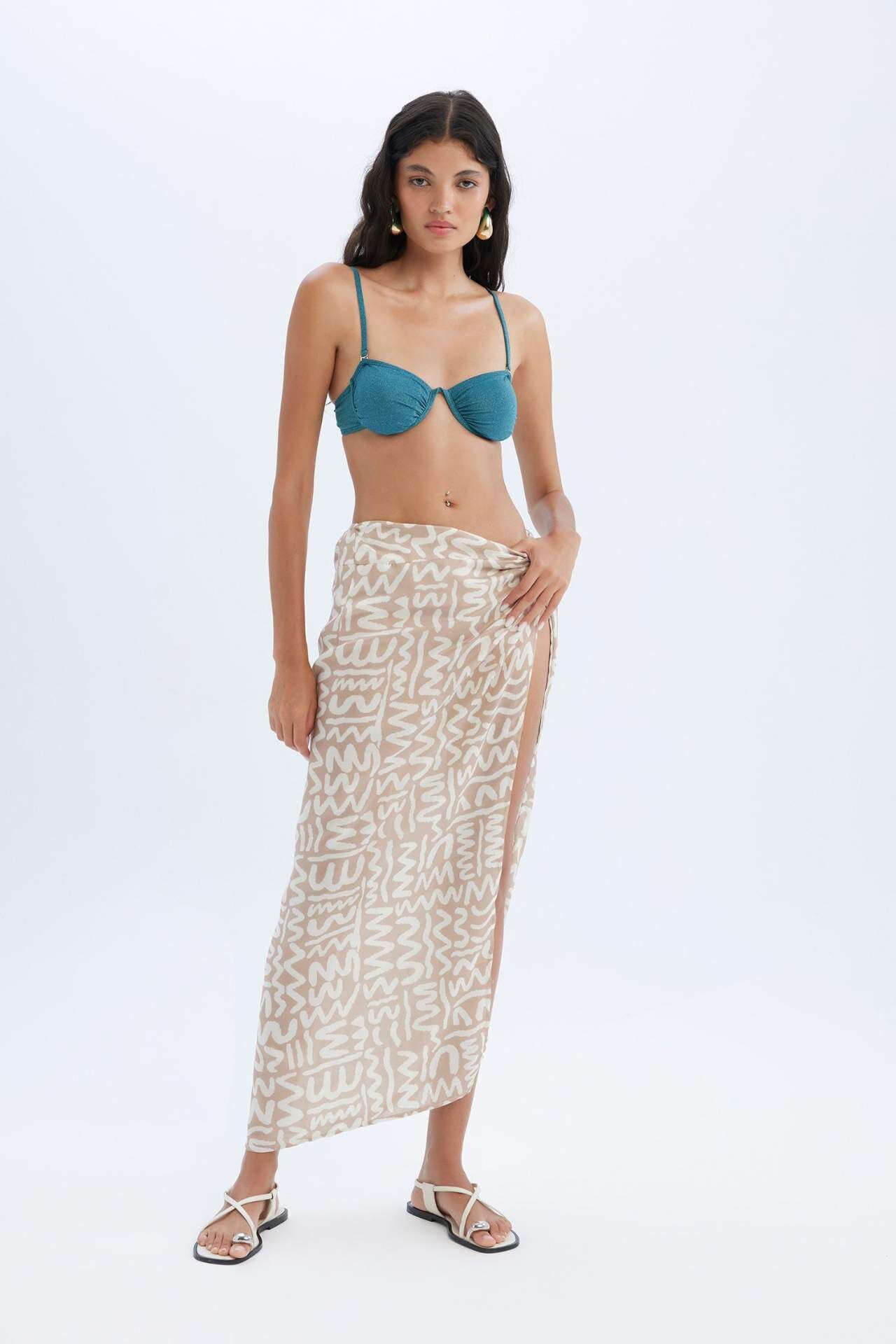 Fall in Love Desenli Yırtmaçlı Plaj Eteği C6104AXNSBG65